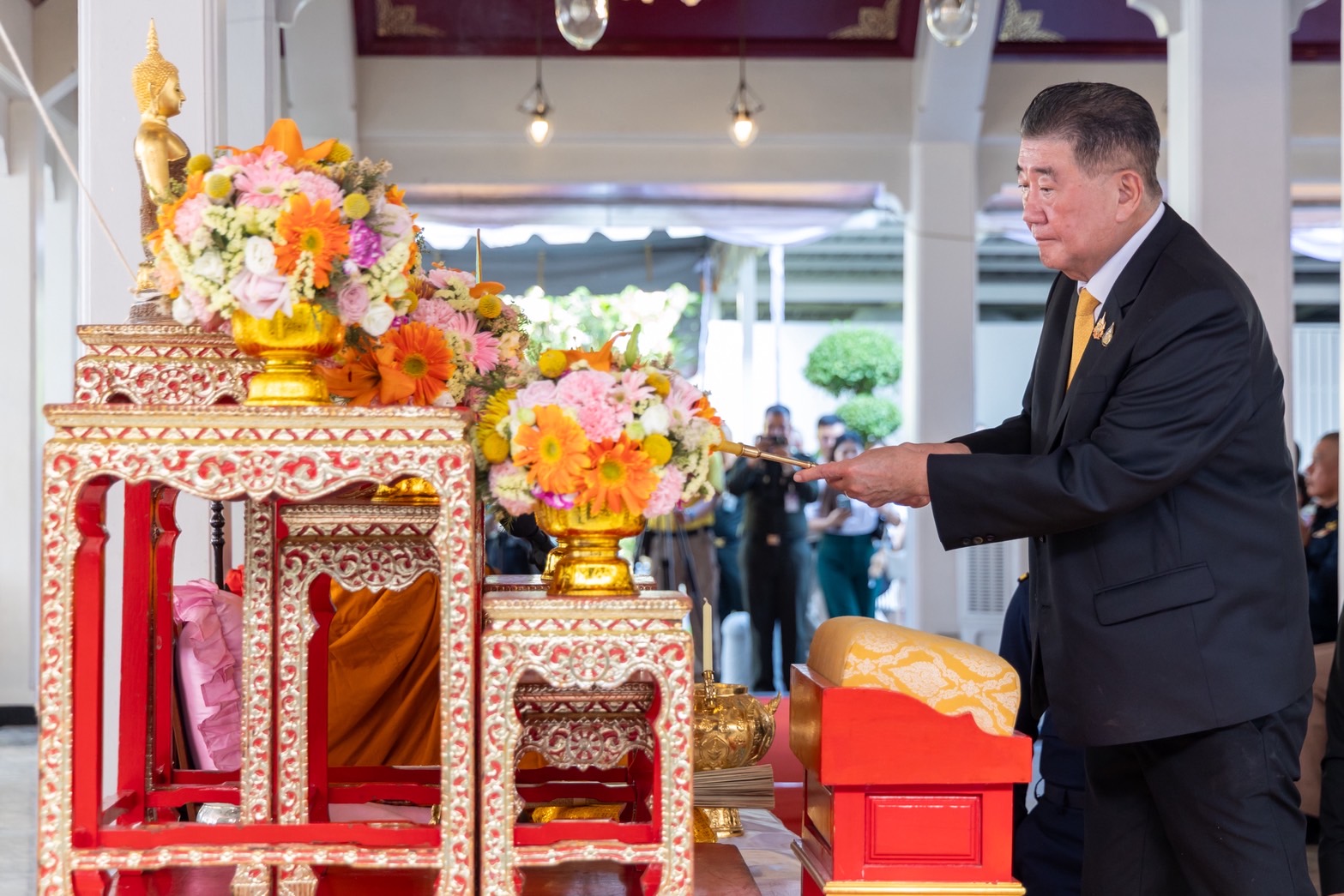 โดยมี พล.อ.ณัฐพล นาคพาณิชย์ รมช.กลาโหม ,พล.อ.สนิธชนก สังขจันทร์ ปลัดกระทรวงกลาโหม ,พล.อ.เดชนิธิศ เหลืองงามขำ ผู้อำนวยการองค์การสงเคราะห์ทหารผ่านศึก พร้อมด้วย คุณอานุสรา เหลืองงามขำ นายกสมาคมแม่บ้านองค์การสงเคราะห์ทหารผ่านศึก ตลอดจนผู้แทนผู้บัญชาการเหล่าทัพ ,คณะนายทหารชั้นผู้ใหญ่ของสำนักงานปลัดกระทรวงกลาโหม และผู้บริหารระดับสูงขององค์การฯ เข้าร่วมในพิธี โดยได้นิมนต์ สมเด็จพระมหาวีรวงศ์ เลขานุการสมเด็จพระสังฆราช วัดราชบพิธสถิตมหาสีมาราม ราชวรวิหาร มาประกอบพิธีทางศาสนาพุทธ