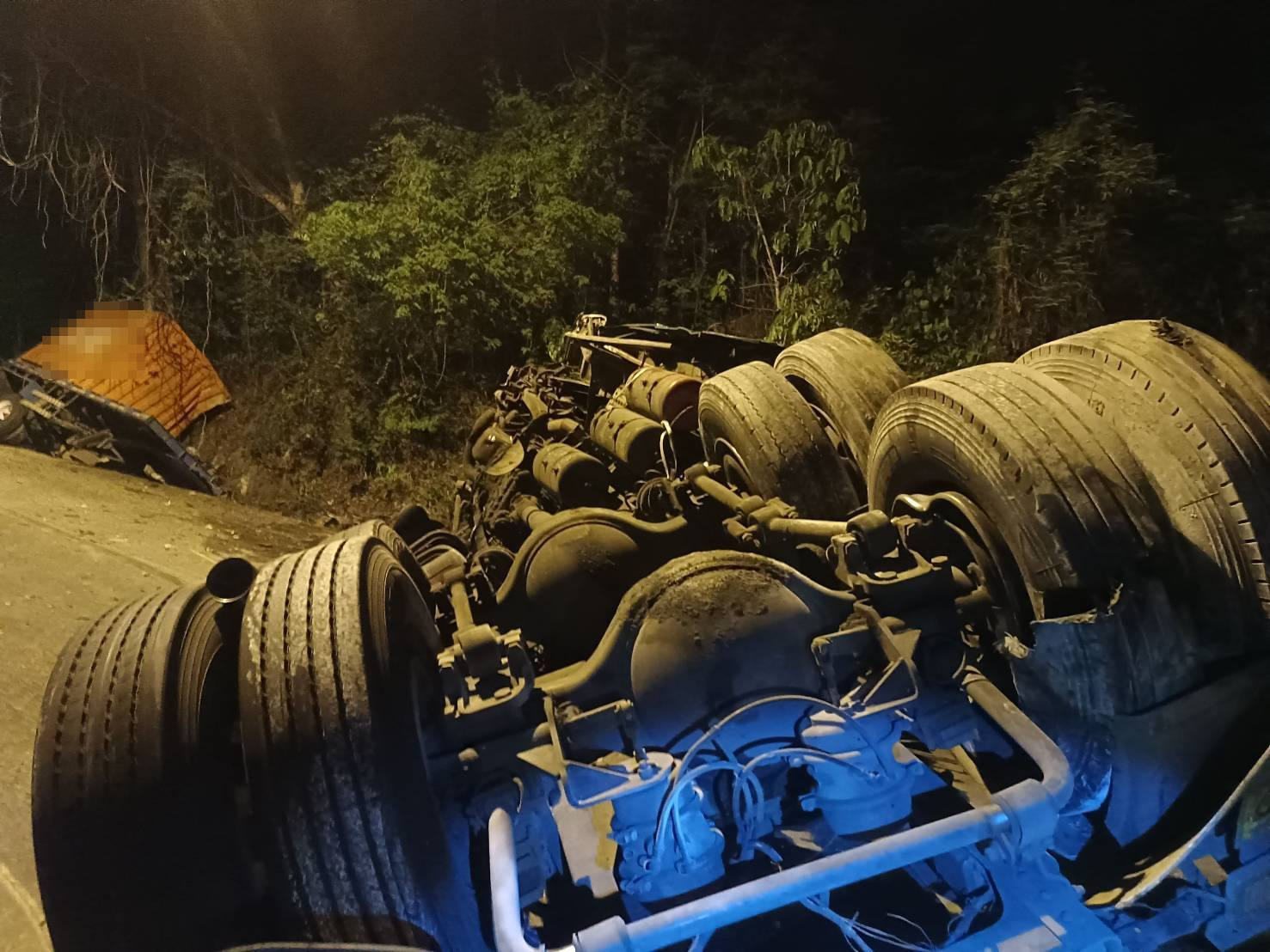 เวลา 21.52 น. ขณะนี้ทางเจ้าหน้าที่กำลังล้างคราบน้ำมันบนผิวจราจร เพื่อนำรถเครนขึ้นไปยกรถที่กีดขวางการจราจร น่าจะใช้เวลาพอสมควร เจ้าหน้าที่กำลังเร่งดำเนินการ