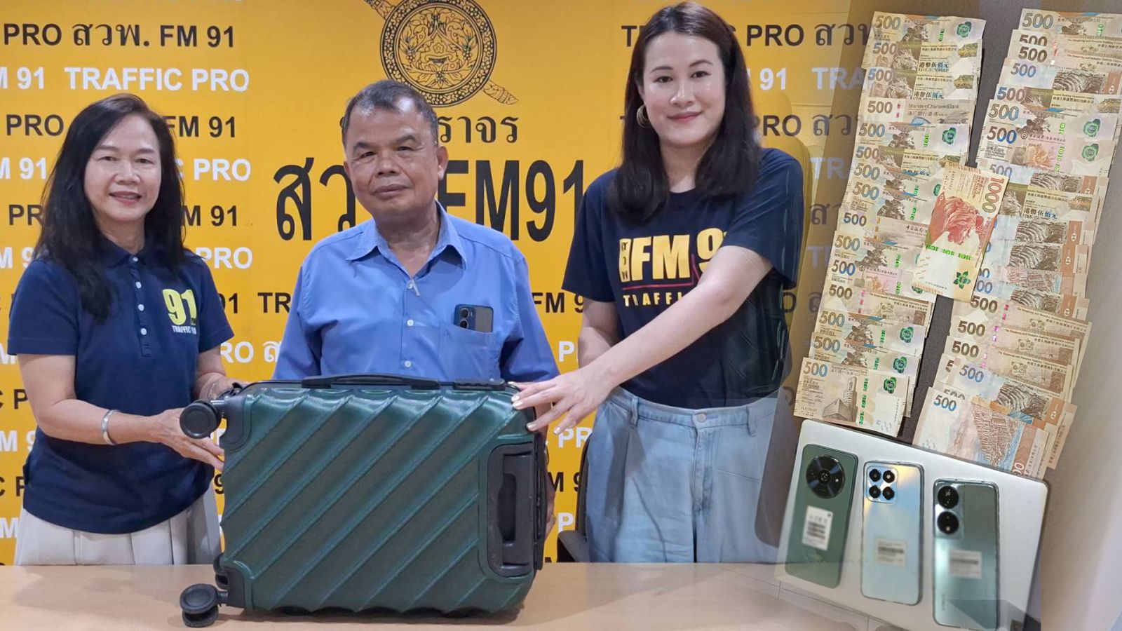 สืบเนื่องจากเมื่อวันที่ 19 เมษายน 2568 คุณไพรัช ฤทธิรงค์ อายุ 63 ปี ชาวจังหวัดนครศรีธรรมราช ผู้ขับขี่รถแท็กซี่ สีชมพู ทะเบียน ทห-4637 กทม.เดินทางมาที่ สถานีวิทยุ สวพ.FM91 หลังโทรมาแจ้งว่า เก็บกระเป๋าเดินทางล้อลากสีเขียวได้ ไม่ทราบว่าเป็นของผู้โดยสารคนไหน ตั้งแต่ช่วงกลางคืน วันที่ 12 เมษายน 2568 แต่หลังจากนั้นตนเองเดินทางไปต่างจังหวัด จองตั๋วเครื่องบินไว้กลับบ้านช่วงสงกรานต์ จึงเพิ่งนำกระเป๋ามาฝาก สวพ.FM91 ตามหาเจ้าของ