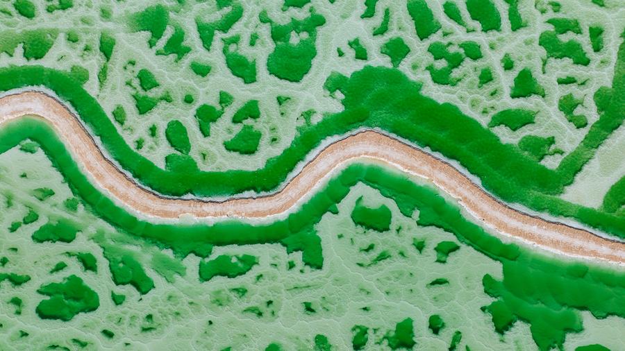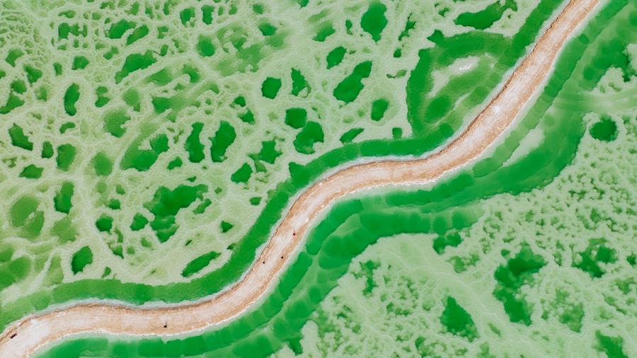 หมางหยา, 22 เม.ย. ซินหัว รายงานว่า -- "ทะเลสาบหยก" ในเมืองหมางหยา แคว้นปกครองตนเองไห่ซี กลุ่มชาติพันธุ์มองโกลและทิเบต มณฑลชิงไห่ทางตะวันตกเฉียงเหนือของจีน ถือเป็นจุดชมวิวทิวทัศน์ยอดนิยมแห่งหนึ่ง เนื่องจากมีสีสันเป็นเอกลักษณ์อันเป็นผลจากความแตกต่างของระดับความลึกและความเข้มข้นของแร่ธาตุในน้ำ