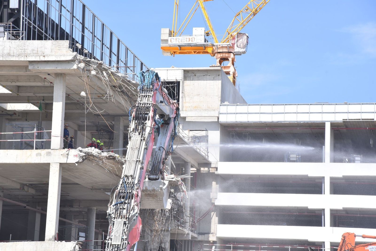 ในส่วนของความยาก ก็ยังคงเหมือนเดิม คือตัวเหล็ก เพราะว่าตัวเหล็ก ทำให้เครื่องมือเราก็เสียหาย ซึ่งก็ได้ซ่อมแซมไป เมื่อวานก็เสียหายไป 8 เคส แต่เคสหนัก ๆ คือ บูมหัก ของเบอร์ 18 บูมหักเลย ก็ซ่อมไม่ได้แล้ว ต้องเปลี่ยนใหม่ เท่ากับว่าวันนี้เครื่องจักรเราหายไปแล้ว 1 ตัว ส่วนเมื่อวานเป็นเคสที่เราซ่อมสายไฮโดริก เราก็เปลี่ยนเลย ซึ่งเราเตรียมสายไว้แล้วอยู่บนหลังรถ พอถึงเวลาก็เอาสายมาเปลี่ยนหน้างานเลย ก็จะช่วยทำงานได้เร็วขึ้น ซึ่งมีทีมงานช่างจากกองโรงงานช่างกล สำนักงานการคลัง กทม. ที่จัดทีมช่างเข้าไปช่วยดำเนินการ
