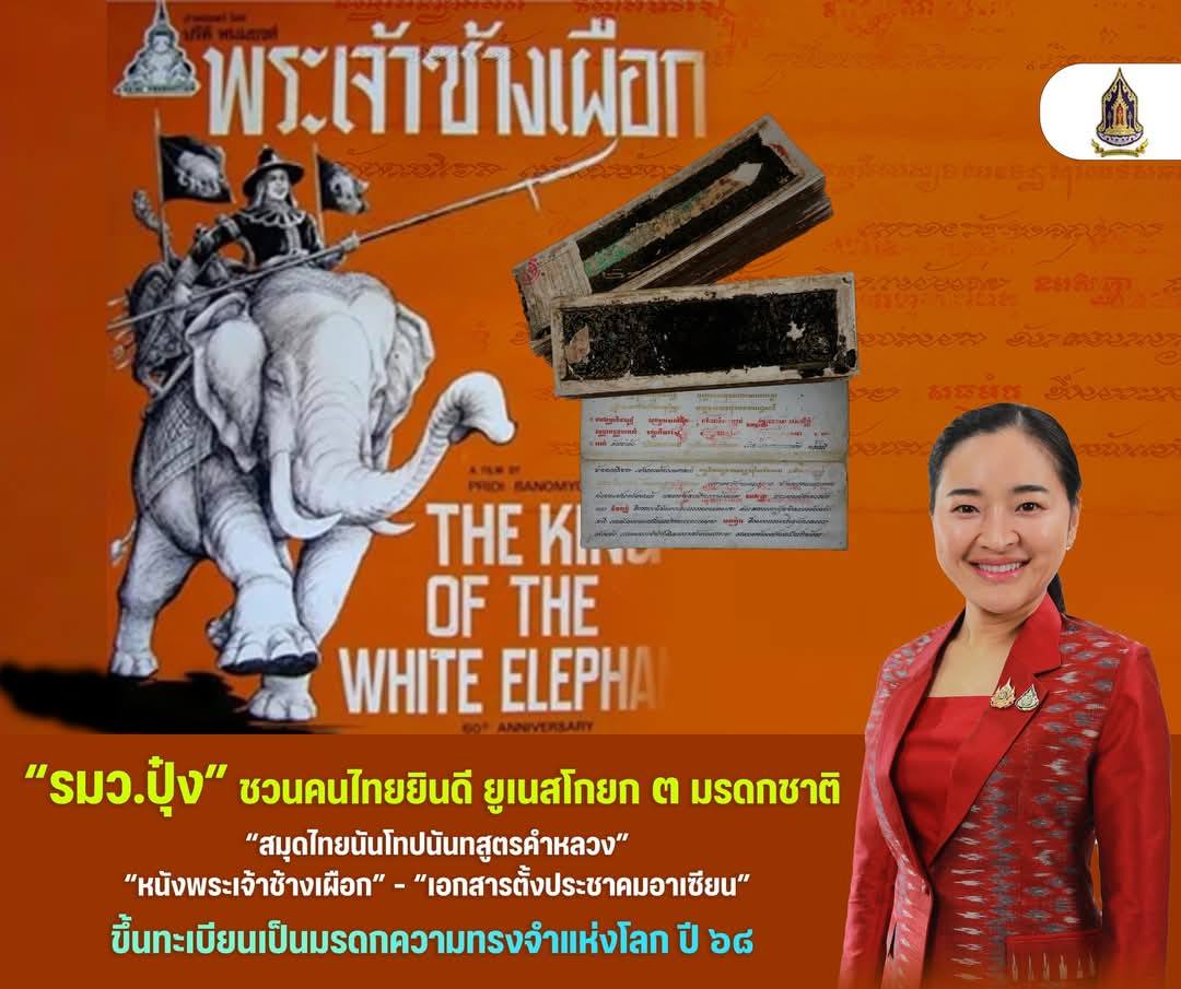 น.ส.สุดาวรรณ กล่าวว่า ส่วนรายการที่ 2 ภาพยนตร์เรื่อง พระเจ้าช้างเผือก และเอกสารจดหมายเหตุที่เกี่ยวข้อง ภาพยนตร์เก็บรักษาไว้ที่หอภาพยนตร์ (องค์การมหาชน) และเอกสารจดหมายเหตุที่เกี่ยวข้องเก็บรักษาไว้ที่สถาบันไทยคดีศึกษา มหาวิทยาลัยธรรมศาสตร์ และรายการที่ 3 เอกสารการก่อตั้งประชาคมอาเซียน (The Birth of the Association of Southeast Asia Nations (ASEAN) (Archives about the Formation ASEAN, 1967-1976) ) เก็บรักษาไว้ที่หอภาพยนตร์ (องค์การมหาชน) ซึ่งประเทศไทยเสนอขึ้นทะเบียนร่วมกับประเทศอินโดนีเซีย ประเทศมาเลเซีย และประเทศสิงคโปร์