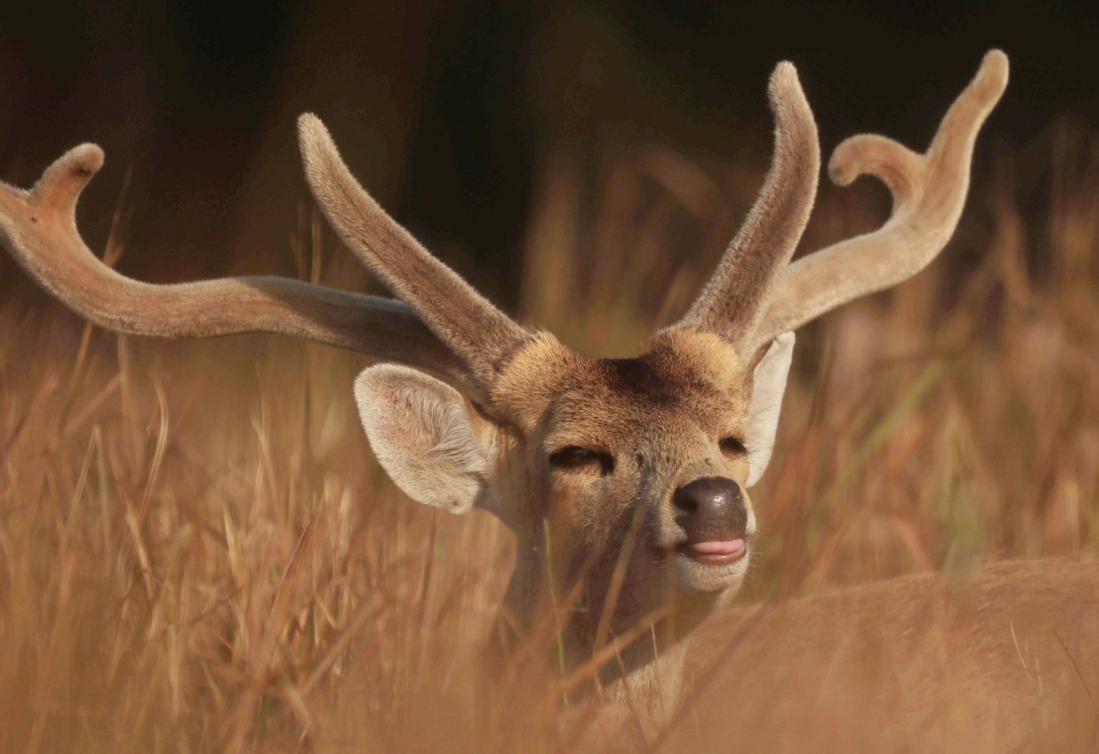 "หนุ่มน้อย หน้าตาดีขี้เล่น แห่งทุ่งกะมัง ในทุกๆ ปี เนื้อทรายเพศผู้เมื่อสิ้นฤดูผสมพันธุ์ ก็จะเริ่มผลัดเขาตั้งแต่ปลายฝนต้นหนาว เขาที่งอกขึ้นมาใหม่จะมีหนังบางๆ และขนกำมะหยี่ปกคลุมดูอ่อนนุ่ม ขนสีเทาและแกมน้ำตาลอ่อนๆ เมื่อต้องแสงเปล่งประกายสีทอง ทำให้หน้าตาเนื้อทรายหนุ่มดูน่ารัก สดใส สงบเสงี่ยมเจียมตัวและเป็นมิตร