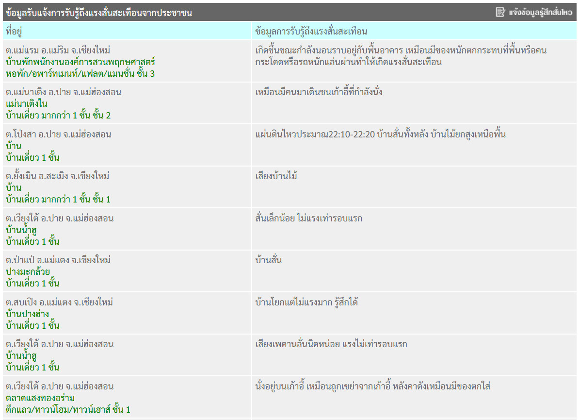 แผ่นดินไหวขนาด 3.8 ที่อำเภอปาย จังหวัดแม่ฮ่องสอน สามารถรับรู้ถึงแรงสั่นสะเทือนได้หลายพื้นที่