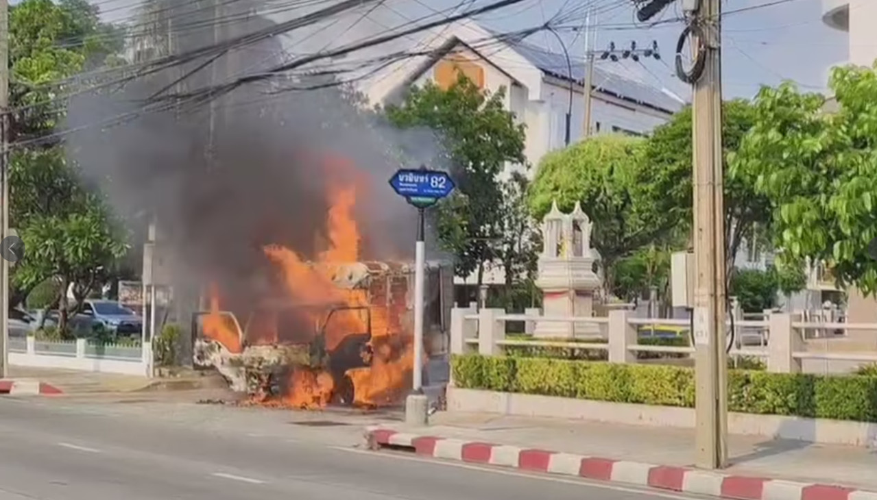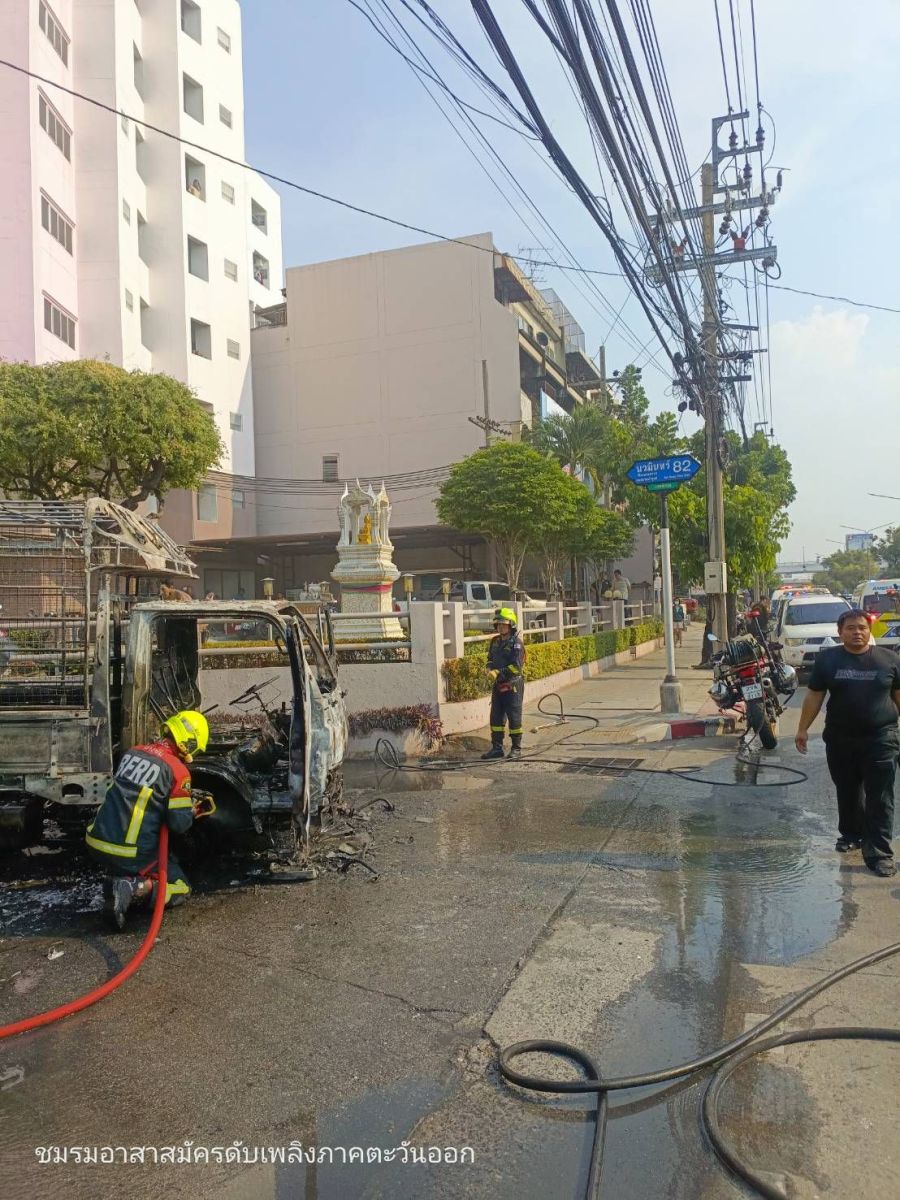 ไฟไหม้รถบรรทุก 4 ล้อเล็ก ปากซอยนวมินทร์ 82 เสียหายวอดทั้งคัน