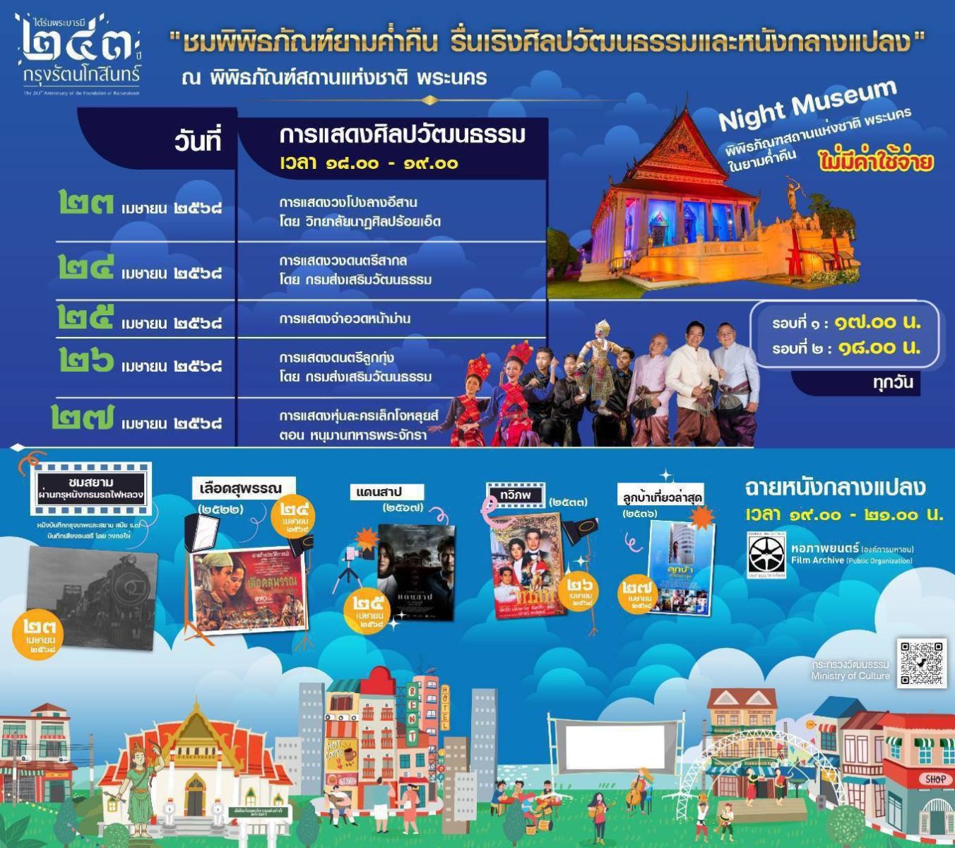- "ชมพิพิธภัณฑ์ยามค่ำคืน รื่นเริงศิลปวัฒนธรรมและหนังกลางแปลง"