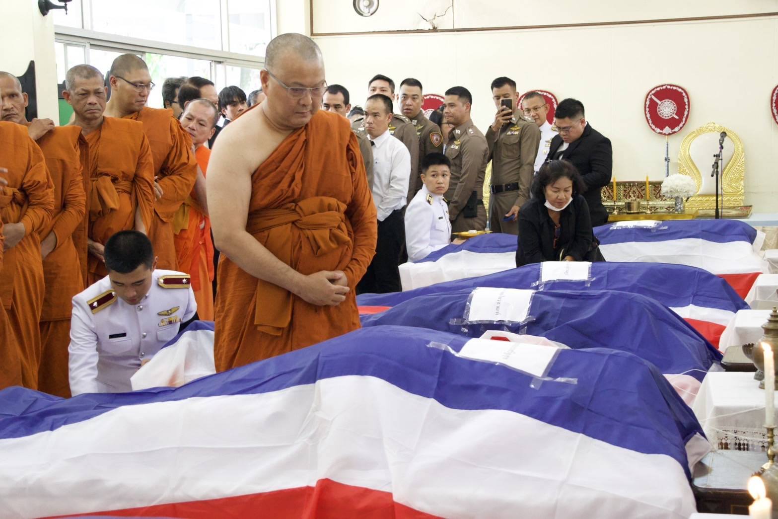 ทั้งนี้ ผบ.ตร. ได้ร่วมพิธีสวดพระอภิธรรมศพ และมอบเงินช่วยเหลือและให้กำลังใจแก่ครอบครัวข้าราชการทั้ง 6 นาย ซึ่งสำนักงานตำรวจแห่งชาติขอแสดงความเสียใจอย่างสุดซึ้ง และขอยกย่อง เชิดชูเกียรติตำรวจทั้ง 6 นาย ที่มีจิตวิญญาณความเป็นผู้พิทักษ์สันติราษฎร์ จวบจนวาระสุดท้ายของชีวิต
