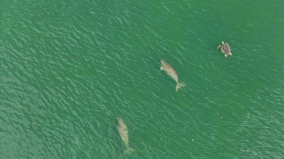 โดรนสำรวจพบฝูงพะยูน 21 ตัวที่เกาะลิบง สัญญาณดีระบบนิเวศทางทะเลตรัง
