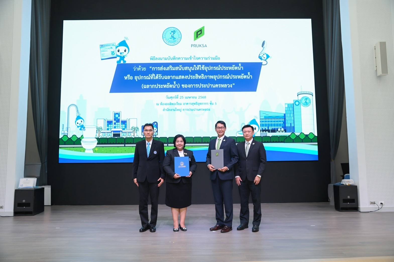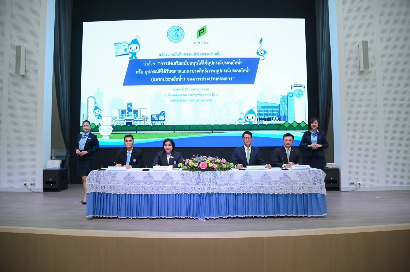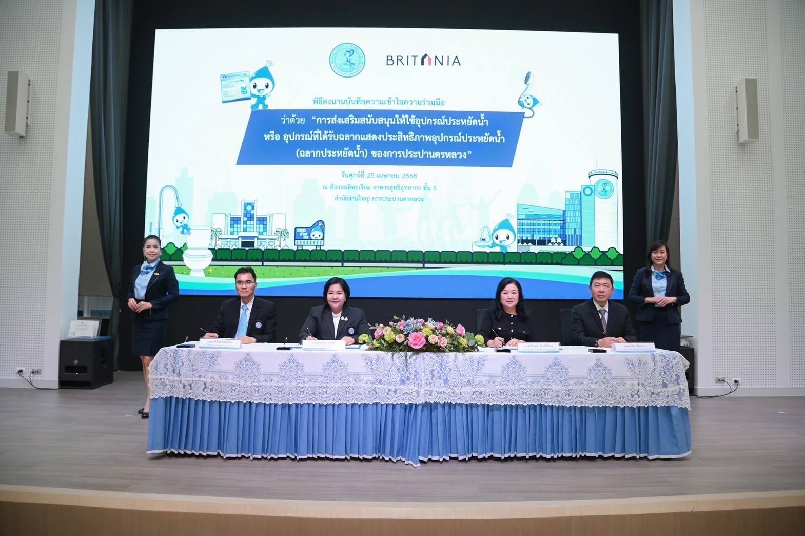 เมื่อวันที่ 25 เมษายน 2568 เวลา 09.30 น. ณ ห้องออดิทอเรียม ชั้น 5 อาคารสุทธิอุทกากร การประปานครหลวง (กปน.) สำนักงานใหญ่ นางสาวสุวรา ทวิชศรี ผู้ว่าการ กปน. พร้อมด้วย นายวชิรวิทย์ โพธิวิจิตร ผู้เชี่ยวชาญ กปน. ระดับ 10 ในฐานะพยานดร.ศุภลักษณ์ จันทร์พิทักษ์ ประธานเจ้าหน้าที่บริหาร บริษัท บริทาเนีย จำกัด (มหาชน) และนายธีระ ทองวิไล ประธานเจ้าหน้าที่บริหาร บริษัท พฤกษา เรียลเอสเตท จำกัด (มหาชน) ร่วมลงนามบันทึกความเข้าใจความร่วมมือ (MOU) ว่าด้วยการส่งเสริมสนับสนุนให้ใช้อุปกรณ์ประหยัดน้ำ หรืออุปกรณ์ที่ได้รับฉลากแสดงประสิทธิภาพอุปกรณ์ประหยัดน้ำ (ฉลากประหยัดน้ำ) ของการประปานครหลวง มีวัตถุประสงค์เพื่อให้เกิดการใช้น้ำอย่างรู้คุณค่า และดูแลรักษาทรัพยากรน้ำให้มีใช้อย่างเพียงพอและยั่งยืน