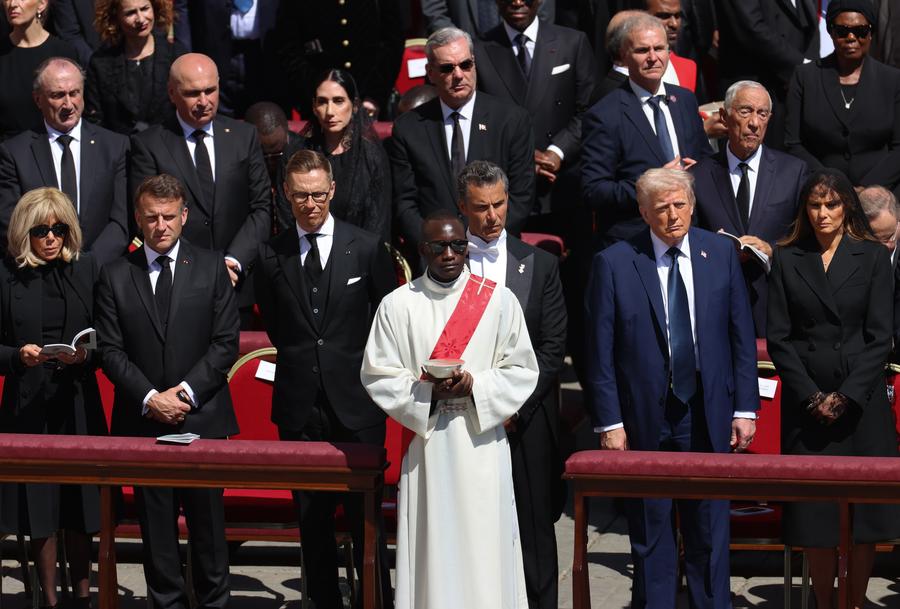 วาติกัน, 27 เม.ย. (ซินหัว) — ประมวลภาพพิธีปลงพระศพของของสมเด็จพระสันตะปาปาฟรานซิส หรือ โป๊ปฟรานซิส บริเวณจัตุรัสเซนต์ปีเตอร์ในนครวาติกัน ซึ่งมีคณะผู้นำจากหลายประเทศ อาทิ โดนัลด์ ทรัมป์ ประธานาธิบดีสหรัฐฯ เอ็มมานูเอล มาครง ประธานาธิบดีฝรั่งเศส แซร์โจ มัตตาเรลลา ประธานาธิบดีอิตาลี จอร์จา เมโลนี นายกรัฐมนตรีอิตาลี ลูอิซ อินาซิโอ ลูลา ดา ซิลวา ประธานาธิบดีบราซิล วิลเลียม รูโต ประธานาธิบดีเคนยา และอัวร์ซูลา ฟอน แดร์ ไลเอิน ประธานคณะกรรมาธิการยุโรป รวมถึงสมาชิกราชวงศ์ ผู้แทน และประชาชนเข้าร่วม