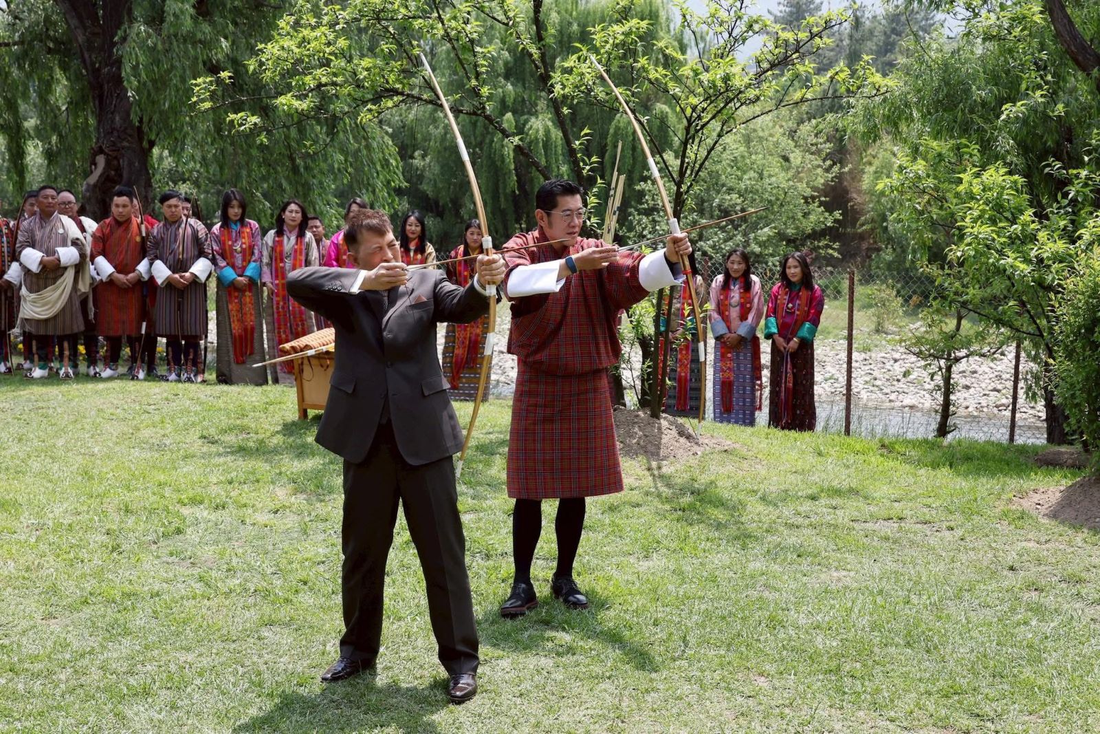 ในโอกาสนี้ พระบาทสมเด็จพระเจ้าอยู่หัว และสมเด็จพระนางเจ้าฯ พระบรมราชินี ทรงแสดงพระปรีชาสามารถด้านกีฬา ในการทรงร่วมยิงธนู อันเป็นกีฬาพื้นบ้านของราชอาณาจักรภูฏาน ถือเป็นส่วนหนึ่งของวิถีชีวิตและวัฒนธรรมพื้นบ้านที่สร้างความใกล้ชิด ความรัก สามัคคีของชุมชน สามารถเล่นได้ตลอดทั้งปี มีเสน่ห์อันเป็นเอกลักษณ์ที่โดดเด่นแตกต่างจากประเทศอื่น