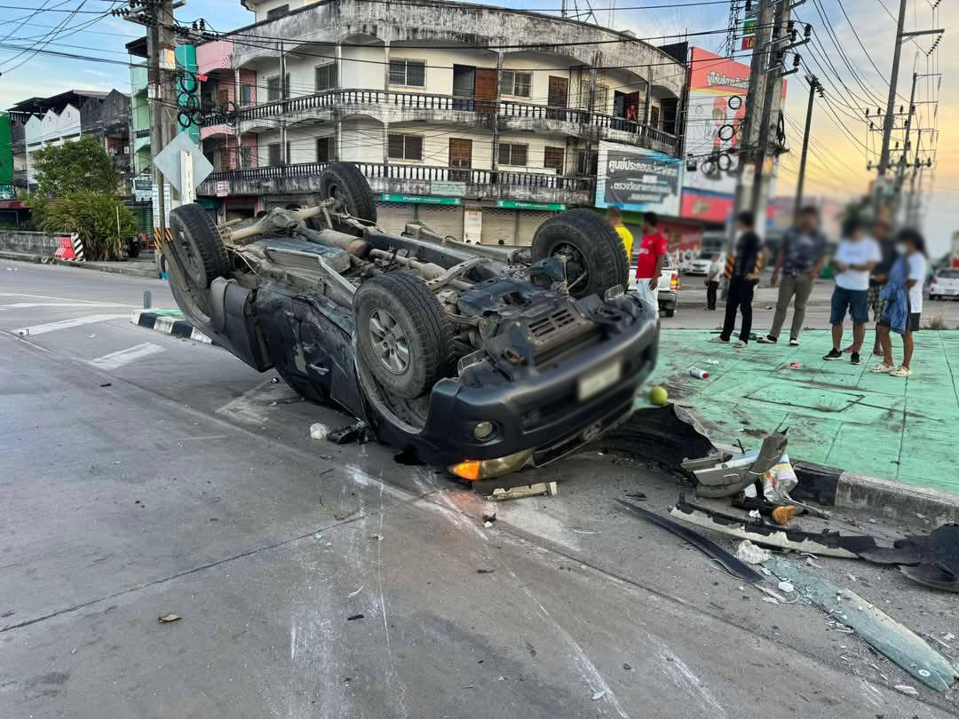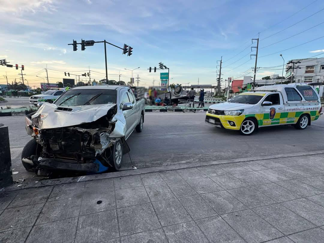 รถกระบะชนสนั่นกลางสี่แยกท่าศาลา มีผู้บาดเจ็บหลายราย จ.นครศรีธรรมราช