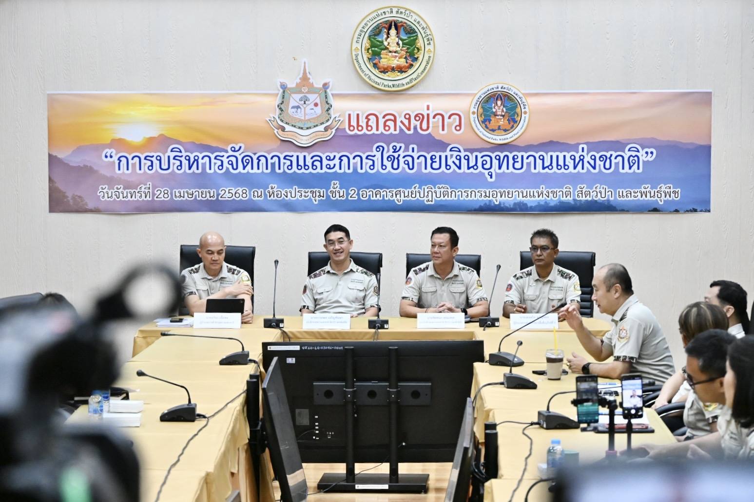 วันที่ 28 เมษายน 2568 ณ ห้องประชุม ชั้น 2 อาคารศูนย์ปฏิบัติการ กรมอุทยานแห่งชาติ สัตว์ป่า และพันธุ์พืช นายอรรถพล เจริญชันษา อธิบดีกรมอุทยานแห่งชาติ สัตว์ป่า และพันธุ์พืช นำคณะผู้บริหารกรมอุทยานแห่งชาติฯ ร่วมชี้แจงข้อเท็จจริงเกี่ยวกับการบริหารจัดการเงินอุทยานแห่งชาติ เพื่อสร้างความเข้าใจต่อสาธารณชนเกี่ยวกับระบบการจัดเก็บและบริหารเงินรายได้อุทยานแห่งชาติตามนโยบายสำคัญของ ดร.เฉลิมชัย ศรีอ่อน รัฐมนตรีว่าการกระทรวงทรัพยากรธรรมชาติและสิ่งแวดล้อม ที่สั่งการให้เร่งขับเคลื่อนระบบ E-Ticket ทั้งระบบให้แล้วเสร็จและพร้อมใช้งานในฤดูกาลท่องเที่ยวหน้า ซึ่งจะเริ่มในวันที่ 15 ตุลาคม 2568 เพื่อเพิ่มความโปร่งใสในการจัดเก็บรายได้ โดยนายชิดชนก สุขมงคล รองอธิบดีกรมอุทยานฯ ได้อธิบายถึงหลักเกณฑ์การใช้จ่ายเงินอุทยานแห่งชาติ โดยเน้นว่าเงินรายได้ส่วนหนึ่งถูกนำไปใช้เพื่อเป็นสวัสดิการให้แก่เจ้าหน้าที่และเพิ่มประสิทธิภาพในการทำงานซึ่งเป็นไปตามระเบียบและแนวทางที่กำหนดไว้