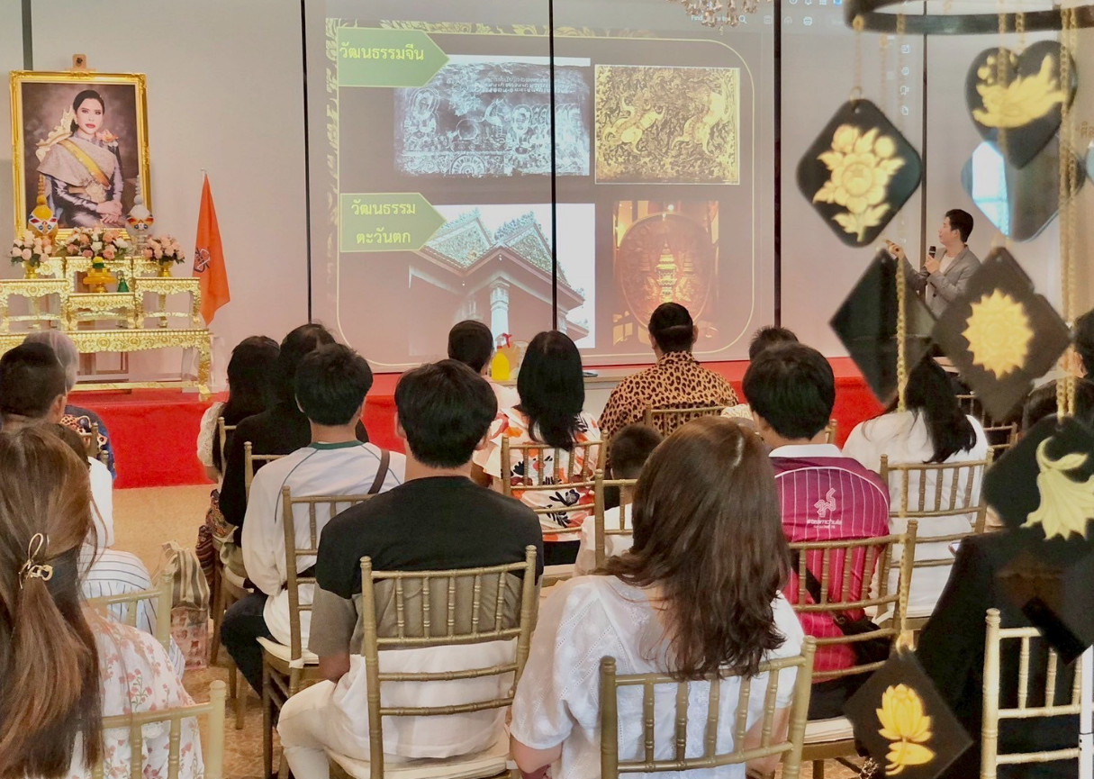 “ลายไทย” ถือเป็นมรดกทางด้านศิลปวัฒนธรรมที่วิจิตรงดงามและสืบเนื่องมาแต่ครั้งโบราณกาลของไทย สมเด็จพระเจ้าน้องนางเธอ เจ้าฟ้าจุฬาภรณวลัยลักษณ์ อัครราชกุมารี กรมพระศรีสวางควัฒน วรขัตติยราชนารี ทรงเห็นคุณค่าและให้ความสำคัญควบคู่ไปกับงานศิลปะแขนงอื่นๆ ด้วยทรงใช้เวลาว่างจากพระกรณียกิจ ด้วยการวาดภาพและระหว่างนั้นก็ยังทรงได้ฝึกฝนการเขียนลายไทย และในบางครั้งได้ปรับประยุกต์ใช้ลายไทย สอดแทรกในงานออกแบบรูปทรงที่สอดคล้องกับธรรมชาติและพื้นที่ที่เหมาะสมในผลงานสร้างสรรค์ นอกเหนือจากวัตถุประสงค์เพื่อแสดงออกถึงคุณค่าทางด้านความงามแล้ว กระบวนการในการสร้างสรรค์ยังเป็นเครื่องมืออันดีต่อการฝึกสมาธิ น้อมนำจิตใจให้เกิดความละเอียดอ่อน และทรงเห็นว่าลายไทยที่งดงามและอ่อนช้อยนั้นต้องใช้ทักษะการฝึกฝนและความเพียร ใช้สมาธิ ฝึกการสังเกต มีความอดทนอดกลั้น แต่เมื่อทรงเริ่มลงมือปฏิบัติ เหตุปัจจัยแก่การเข้าถึงความสงบของจิตก็เกิดขึ้นได้โดยง่าย ด้วยสิ่งนี้ จึงทรงเห็นว่าการศึกษาลายไทยเป็นประโยชน์ต่อจิตใจสร้างพลังใจ ด้วยภาวะดังกล่าวมีความคล้ายสภาวะขณะปฏิบัติธรรม ถือเป็นการนำเอาธรรมะเข้ามาใช้ในการทำงานศิลปะและชีวิตประจำวัน จากการที่สมเด็จพระเจ้าน้องนางเธอ เจ้าฟ้าจุฬาภรณวลัยลักษณ์ อัครราชกุมารี กรมพระศรีสวางควัฒน วรขัตติยราชนารี ทรงมีความสนพระทัยเกี่ยวกับลายไทยจึงเป็นที่มาของการจัดโครงการ “ทิพย์พิมานสร้างศิลป์” ครั้งที่ ๑/๒๕๖๘ (workshop: เครื่องแขวนลายทอง) เพื่อเป็นการส่งเสริมและพัฒนาการเรียนรู้ทางด้านศิลปะไทย ซึ่งการเขียนลายไทย ถือเป็นกระบวนการหนึ่งในการพัฒนาจิตใจให้เกิดสติปัญญา ทั้งผู้สร้างสรรค์และผู้ชมก็ล้วนได้ประโยชน์ ดังพระดำรัสที่ว่า “ศิลปะเป็นเครื่องกล่อมเกลาชีวิตของคน” การศึกษาลายไทยนั้นแฝงด้วยสภาวะธรรมอันนำไปสู่เนื้อหาหรือปรัชญาความหมายที่ลึกซึ้ง ซึ่งไม่เพียงแฝงอยู่ในกระบวนการสร้างสรรค์ผลงาน แต่รวมไปถึงวิถีชีวิต ขนบธรรมเนียมประเพณี การดำรงชีวิตและสิ่งแวดล้อมที่บรรพบุรุษได้สร้างสรรค์ผลงานด้วยความรัก ความศรัทธา เกิดเป็นความองค์ความรู้และภูมิปัญญาของแผ่นดินไทย