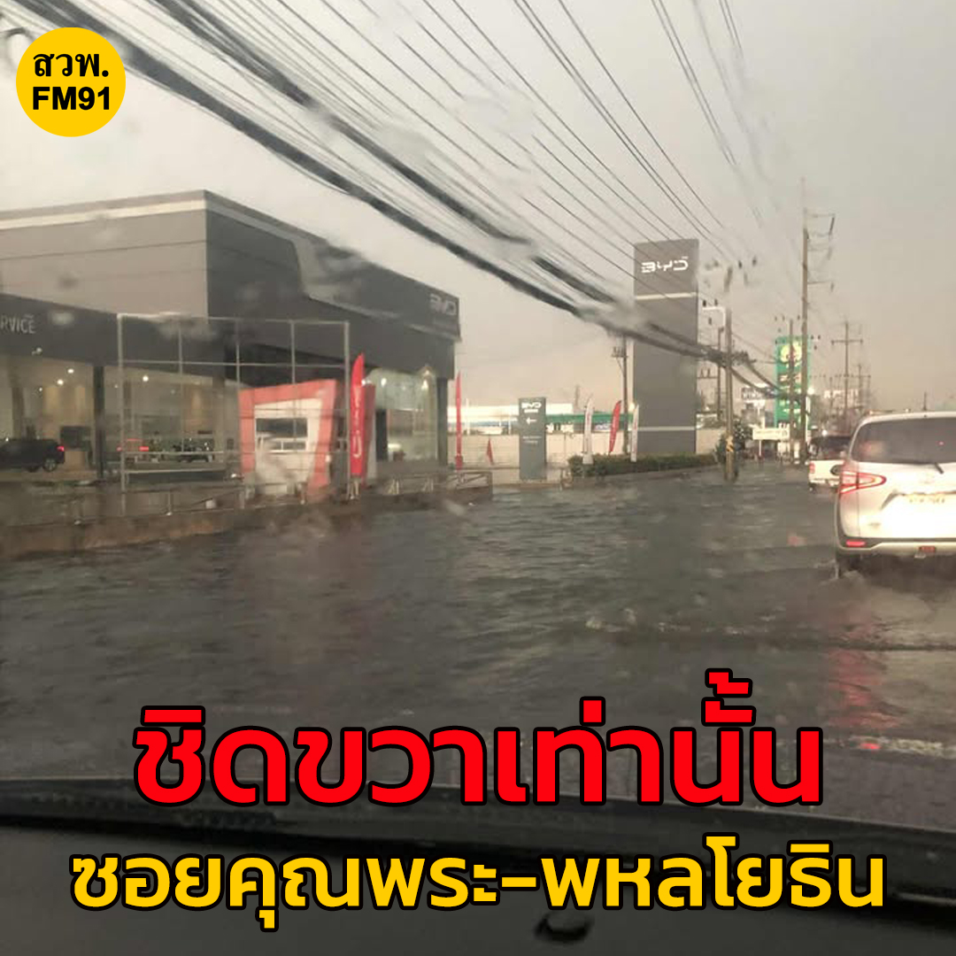 ปากซอยคุณพระ ก่อนถึงต่างระดับคลองหลวง และ หน้าม.กรุงเทพ น้ำท่วมขังหลังฝนตกหนัก ท้ายสะสมถึงสะพานข้ามคลองรังสิต