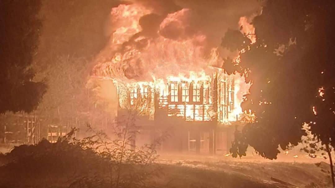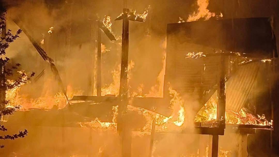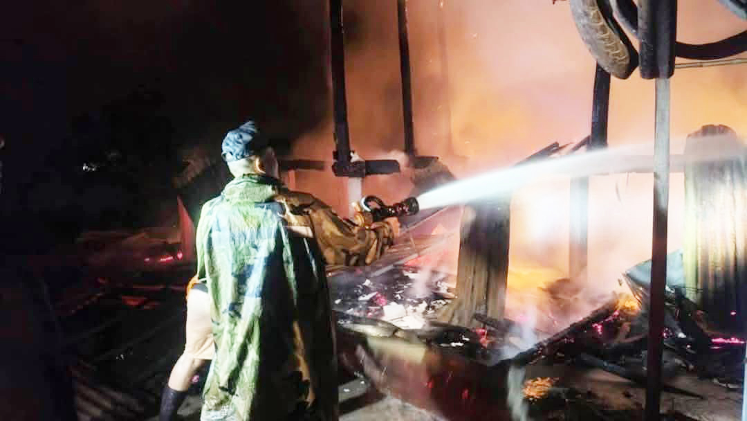 ฟ้าผ่าลงบ้านเรือน แล้วเกิดเพลิงลุกไหม้เสียหายวอดทั้งหลัง จ.มหาสารคาม