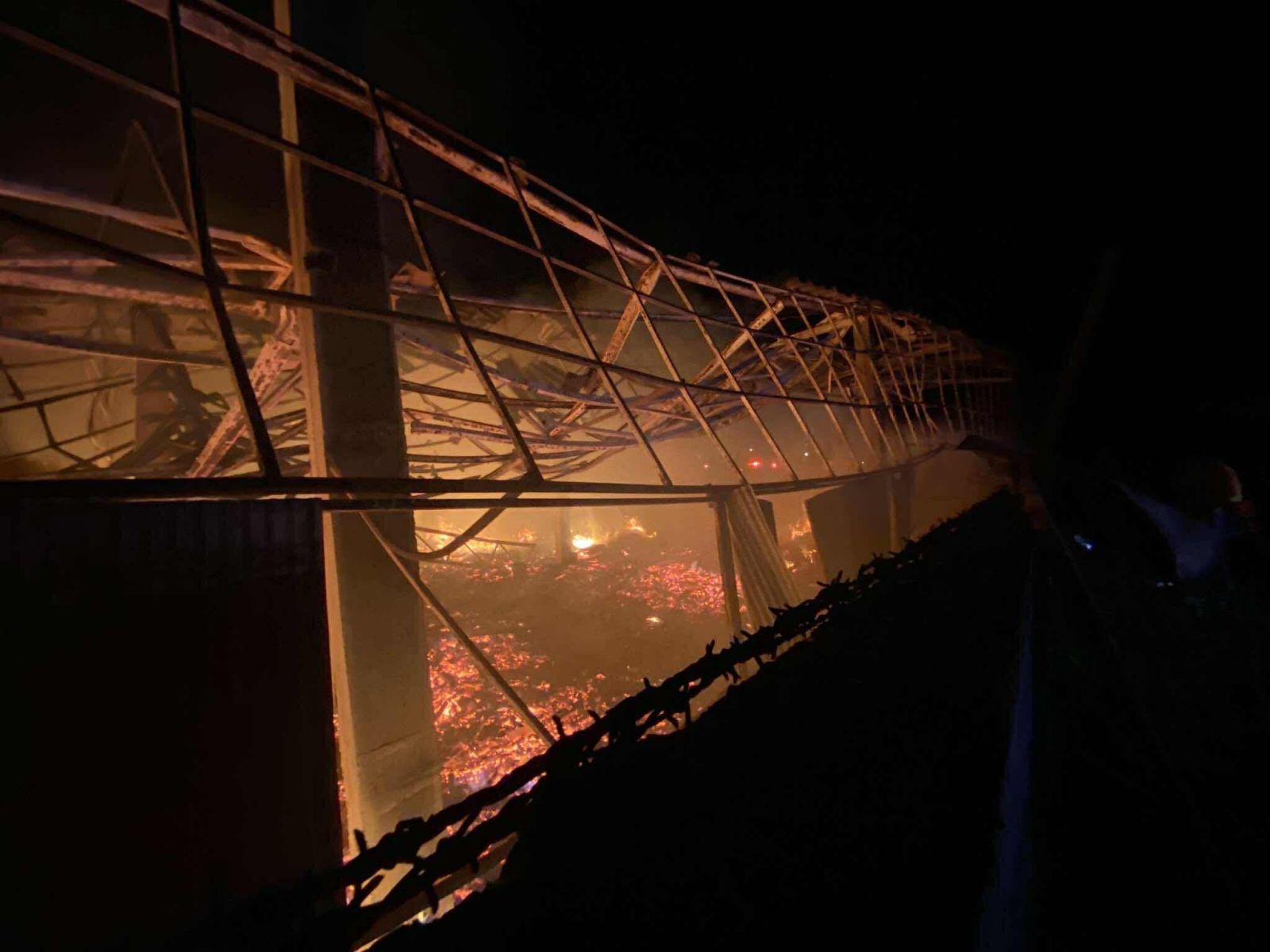 เวลา 02.22 น. ยังไม่สามารถควบคุมเพลิงได้ และลุกลามไปโกดังที่ 2 ที่อยู่บริเวณด้านหลัง จนท.ยังใช้น้ำต่อเนื่อง