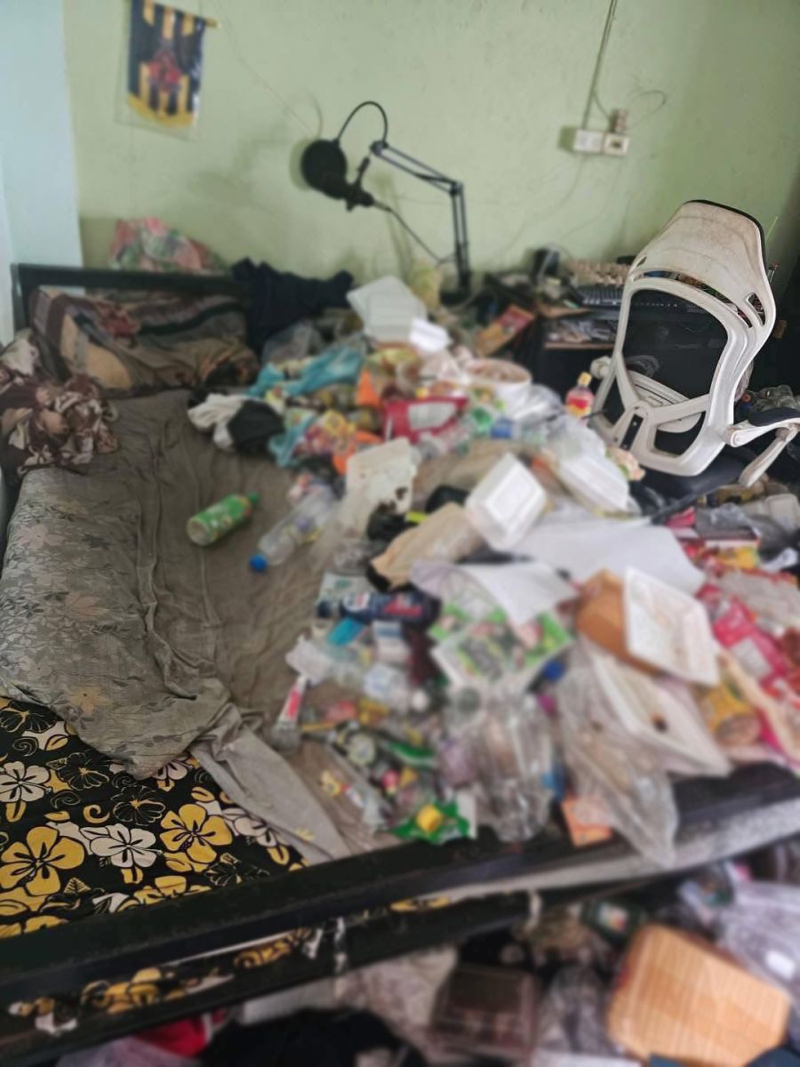 จากภาพที่เจ้าของหอเปิดเผย พบว่าขยะถูกทิ้งเกลื่อนทั่วห้อง แม้แต่บนที่นอนก็เต็มไปด้วยเศษอาหารและสิ่งสกปรก ผ้าปูที่นอนดำมอมจนแทบไม่เห็นสีเดิม เจ้าของเผยว่าไม่เคยคิดว่าจะต้องเจอกับเหตุการณ์แบบนี้ด้วยตัวเอง เพราะเคยเห็นแต่ในข่าวที่เกิดขึ้นในพื้นที่จังหวัดอื่น