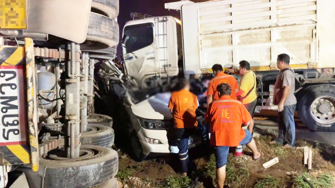 รถเก๋งถูกชนอัดก็อปปี้ระหว่างรถบรรทุกทั้ง 2 คัน กลางถนนหมายเลข 344 พบผู้เสียชีวิตชาย 3 ราย จ.ระยอง