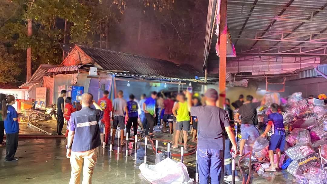เจ้าหน้าที่และรถดับเพลิง ระดมฉีดน้ำ ดับไฟไหม้โกดังเก็บรองเท้า ในพื้นที่ตลาดโรงเกลือ จ.นครนายก