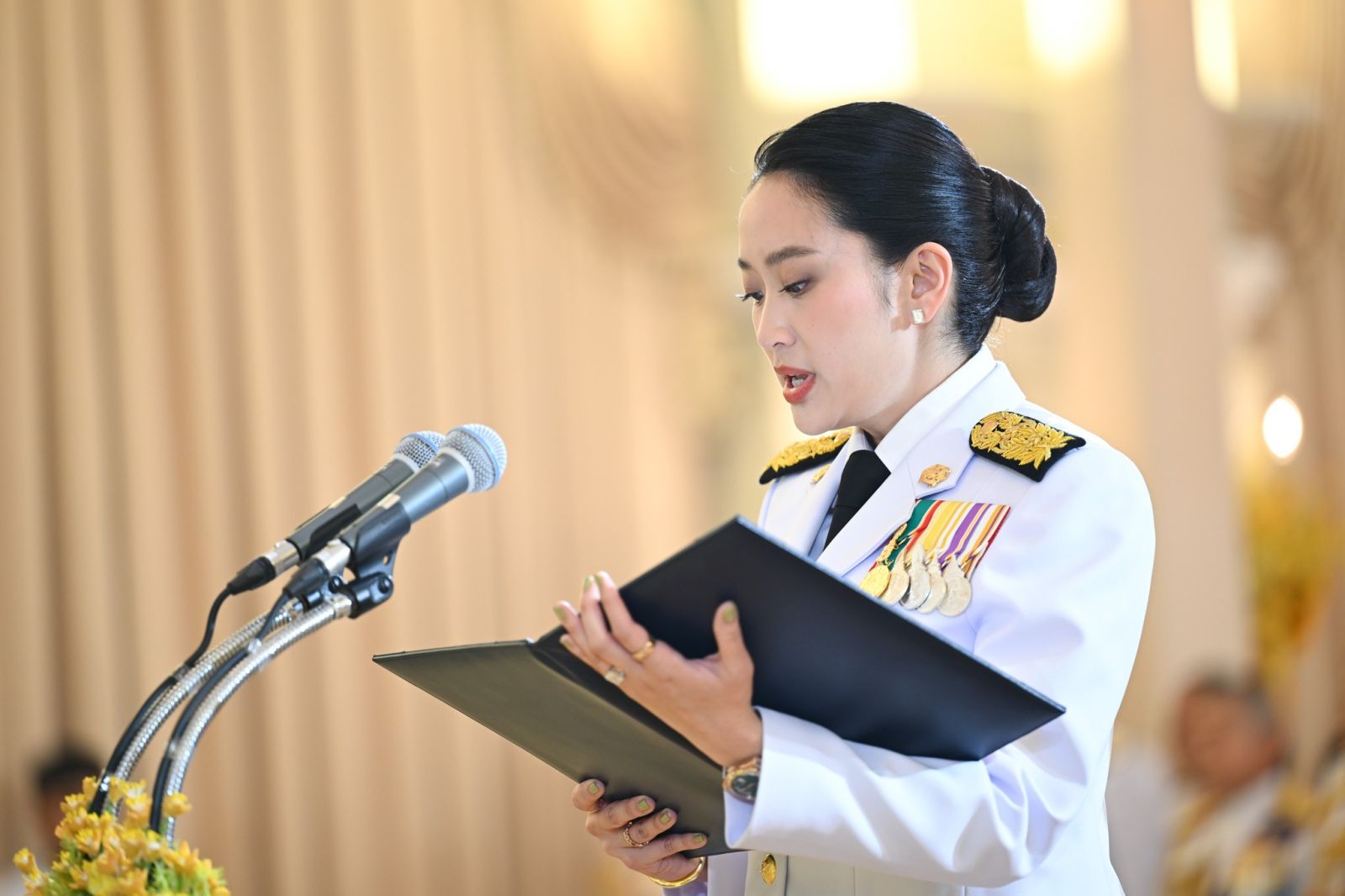 ข้าพระพุทธเจ้า นางสาวแพทองธาร ชินวัตร นายกรัฐมนตรี ในนามของคณะรัฐมนตรี คู่สมรส คณะทูตานุทูต ข้าราชการ และพสกนิกรชาวไทยทุกหมู่เหล่า มีความปีติโสมนัสเป็นล้นพ้น ที่ได้มาร่วมกันแสดงความจงรักภักดีและถวายพระพรชัยมงคลเนื่องในโอกาสอันเป็นศุภมงคลสมัยวันฉัตรมงคลที่เวียนมาบรรจบครบรอบในวันนี้