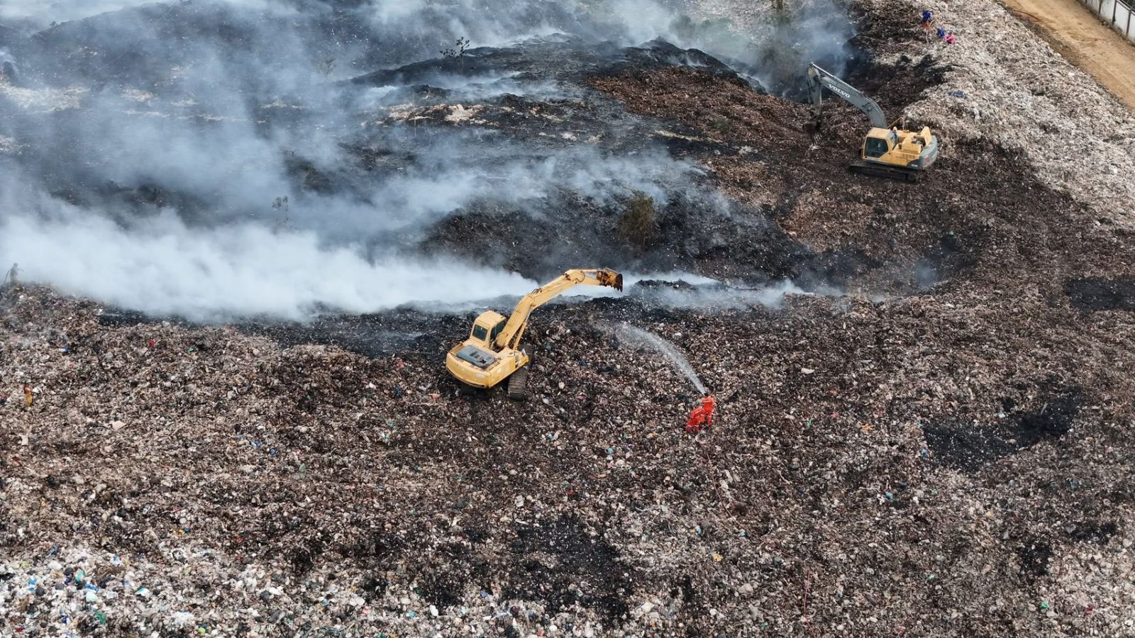 ซึ่งจนถึงขณะนี้การควบคุมเพลิง สามารถควบคุมได้ในระดับหนึ่งเท่านั้น แต่ยังไม่สามารถทำให้เพลิงสงบลงได้ เนื่องจากบ่อขยะเป็นบ่อขยะขนาดใหญ่ มีเศษพลาสติกถูกนำมาทิ้งไว้ในบ่อขยะดังกล่าวเป็นจำนวนมาก เมื่อเกิดไฟลุกไหม้ ไฟจึงมีการติดและลุกลามเข้าไปด้านใต้ของกองขยะ ต้องใช้รถแบคโฮเข้าเกลี่ยกองขยะ จึงทำให้การดับเพลิงเป็นไปด้วยความยากลำบาก