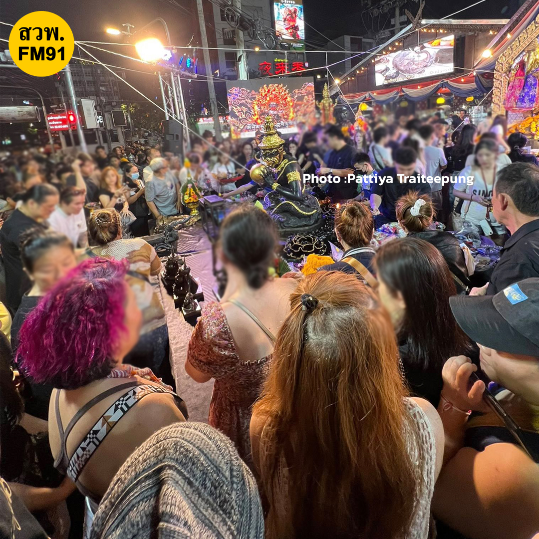 ปชช. จำนวนมากเดินทางมาไหว้ "พระราหู" ตามความเชื่อว่าในวันนี้ จะมีการย้ายเข้า-ออกราศีครั้งใหญ่