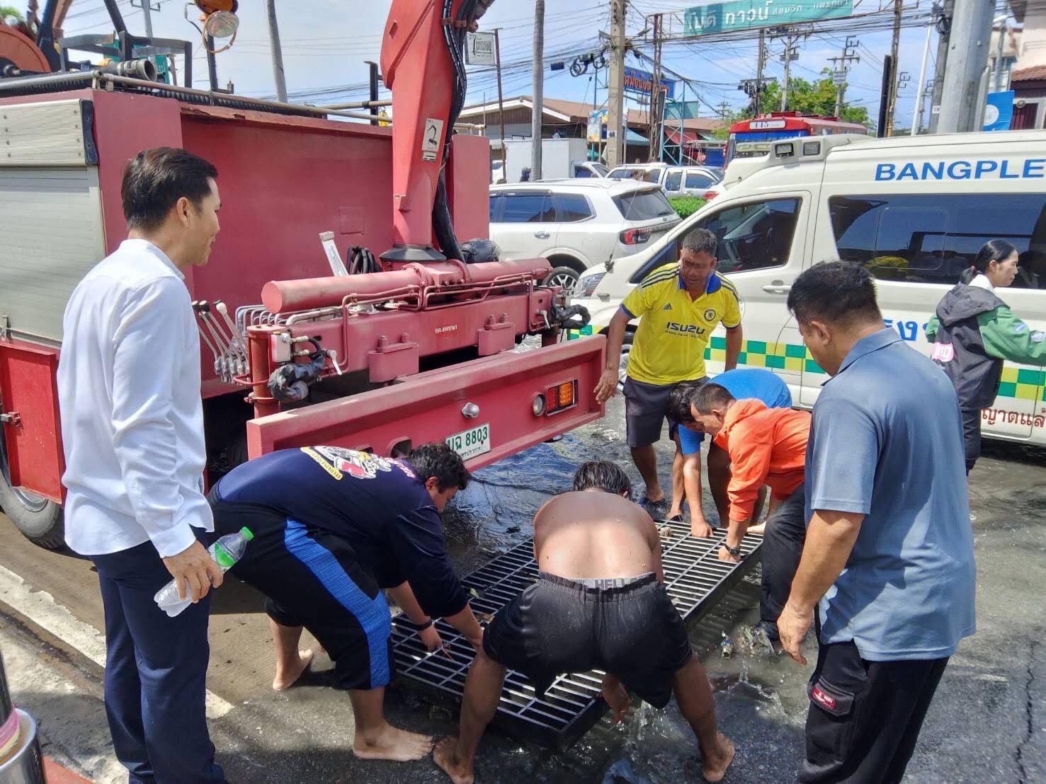 รายงานความคืบหน้า จากกรณีเกิดฝนตกหนักในพื้นที่จังหวัดสมุทรปราการ เมื่อวันที่ 6 พฤษภาคม 2568 ส่งผลให้เกิดน้ำท่วมขังบริเวณผิวจราจรในเขตเทศบาลนครสมุทรปราการ และถนนพุทธรักษา บริเวณหน้าตลาดรัศมีอนันต์พลาซ่าถึงวัดแพรกษา ทางเทศบาลนครสมุทรปราการและเทศบาลตำบลแพรกษาได้ทำการเร่งระบายน้ำอย่างต่อเนื่อง พร้อมจัดเจ้าหน้าที่อำนวยความสะดวกด้านการจราจรแก่ประชาชน จนขณะนี้สถานการณ์น้ำท่วมขังได้คลี่คลายและกลับสู่ภาวะปกติแล้ว