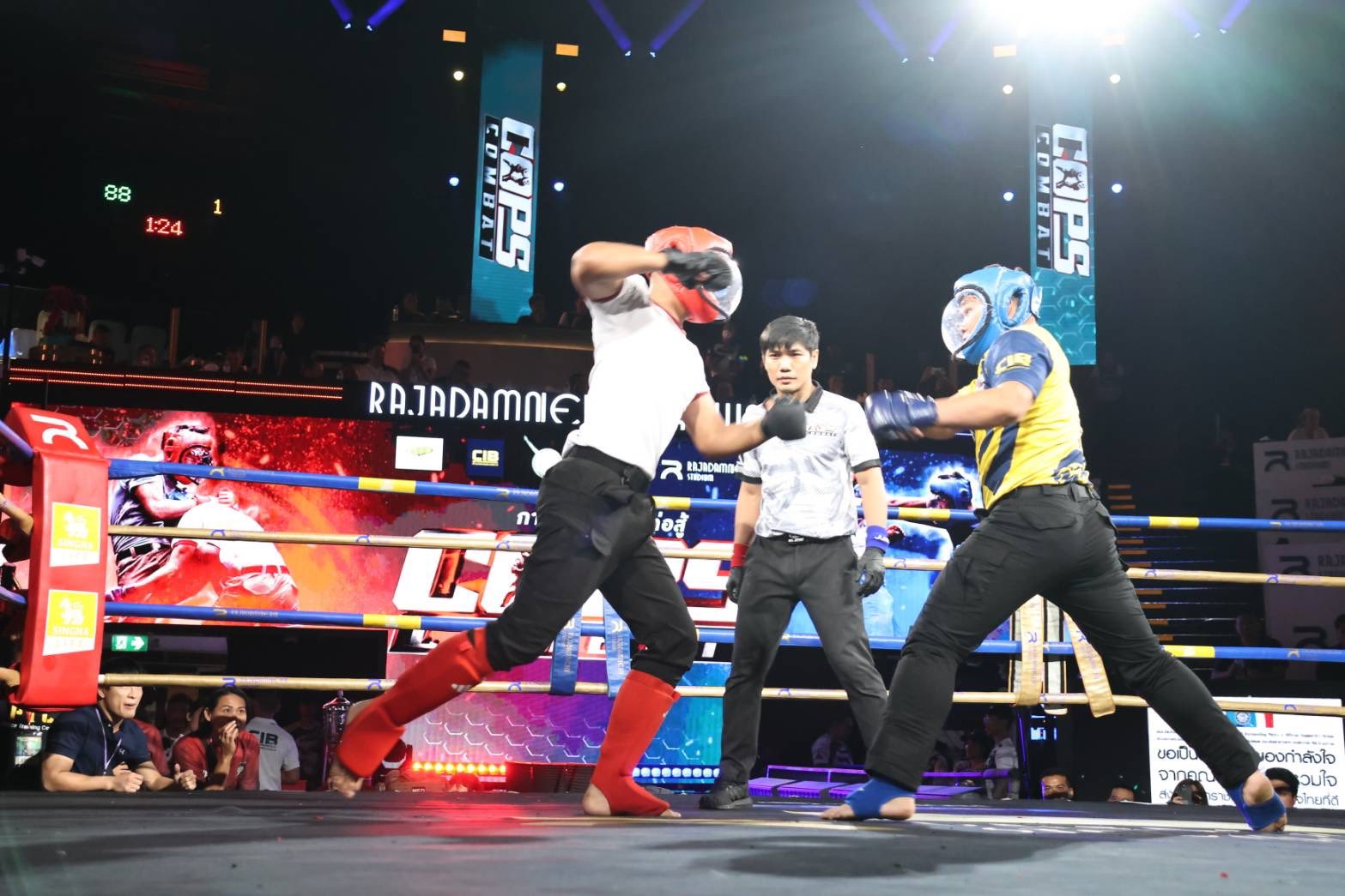 เมื่อวันที่ 6 พ.ค.68 ที่เวทีมวยราชดำเนิน กองบัญชาการตำรวจสอบสวนกลาง (CIB) จัดการแข่งขันกีฬาต่อสู้ป้องกันตัวของตำรวจ หรือ Cops Combat ในการแข่งขันกีฬาตำรวจ ปี 2568 โดยมี พล.ต.อ.กิตติ์รัฐ พันธุ์เพ็ชร์ ผู้บัญชาการตำรวจแห่งชาติ เป็นประธานในพิธีเปิด และมอบรางวัลให้กับผู้ชนะการแข่งขัน