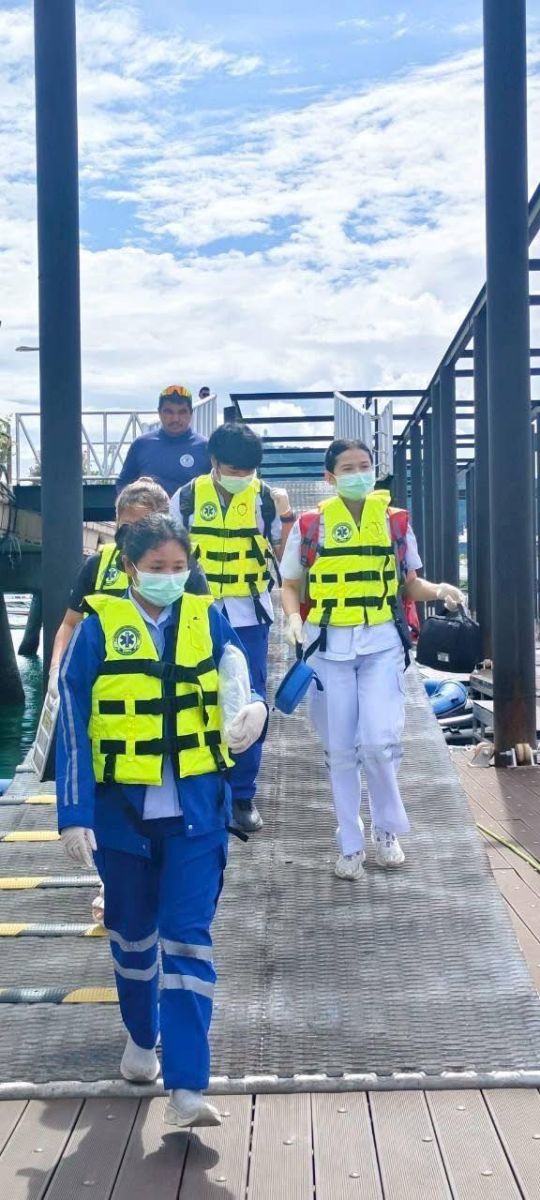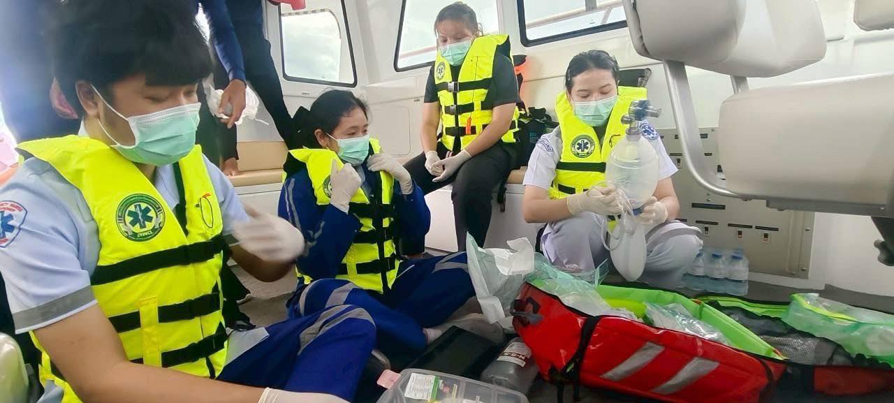 เจ้าหน้าที่ศูนย์ฯ จึงประสานส่งเรือ “ไข่มุกอันดามัน 5” พร้อมทีมแพทย์และพยาบาลจากโรงพยาบาลฉลองออกปฏิบัติการช่วยเหลือโดยเร่งด่วน เมื่อถึงที่เกิดเหตุ พบผู้ประสบเหตุเป็นนักท่องเที่ยวชายชาวออสเตรเลีย อายุ 22 ปี อยู่ในอาการหมดสติ เจ้าหน้าที่ได้ทำการช่วยชีวิต (CPR) บนเรือจนชีพจรกลับมา และรีบนำส่งต่อรถพยาบาลเพื่อนำตัวไปรักษาต่อยังโรงพยาบาลฉลองอย่างเร่งด่วน
