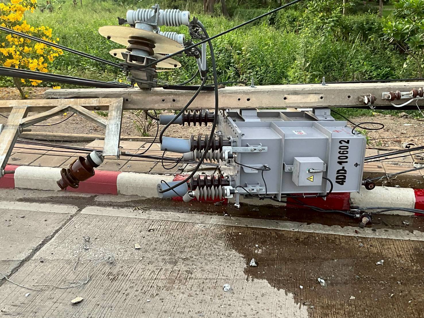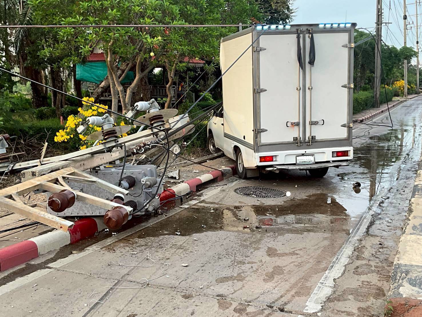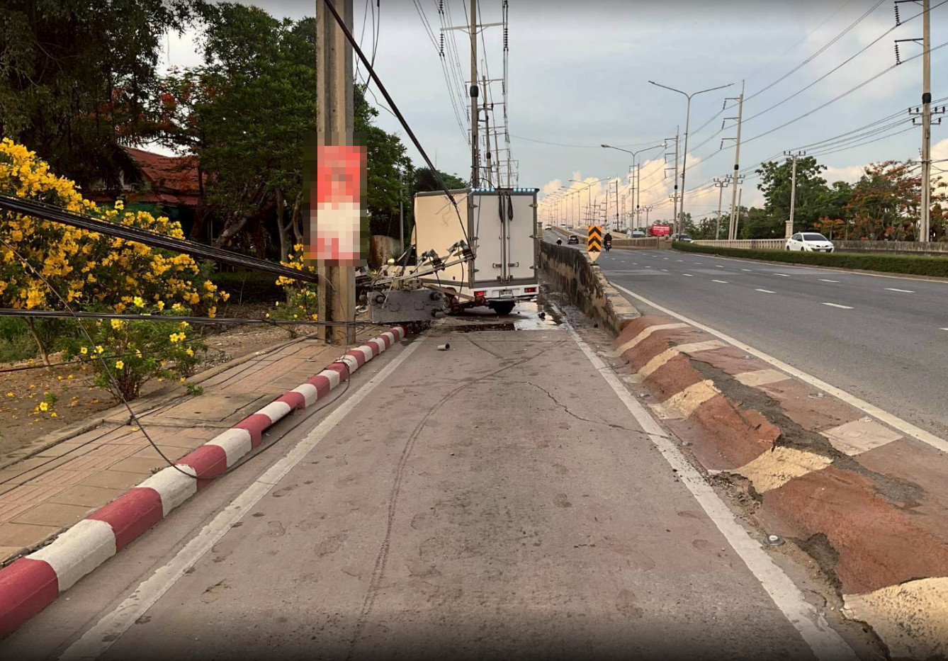 MEA เร่งแก้ไขเหตุรถชนเสาไฟฟ้าหัก 1 ต้น ที่ถนนฉลองกรุง