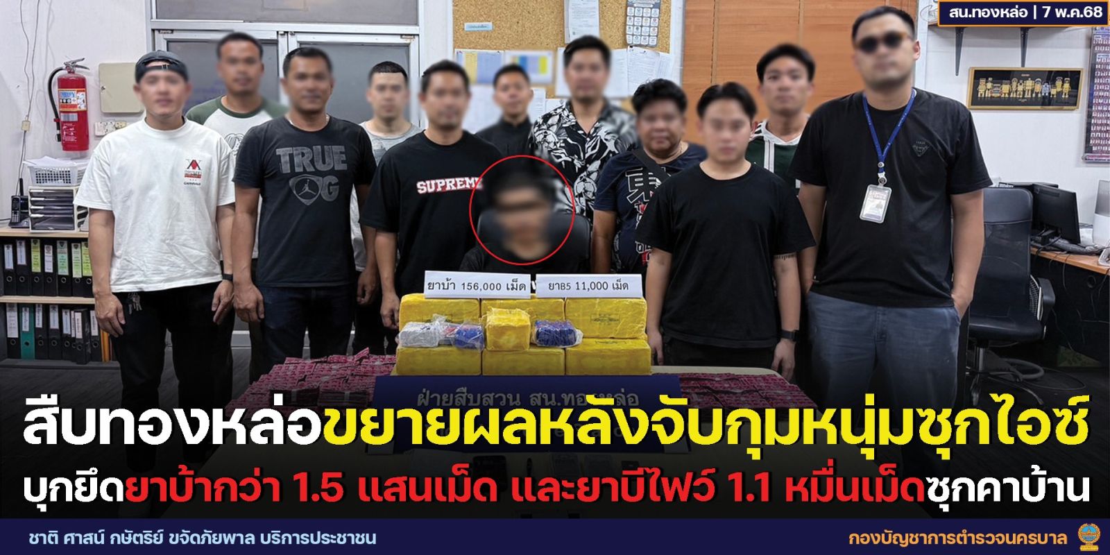 จากนั้นจึงทำการซักถามขยายผล ชายดังกล่าว ให้การรับว่าได้มาจากเพื่อนของตน โดยได้ถ่ายเก็บไว้ภายในบ้านพักซอยสินชัย 3 อ่อนนุช จากนั้นจึงได้พาเจ้าหน้าที่ฯเข้าตรวจค้นบ้านพักหลังดังกล่าว ผลการตรวจค้น พบยาบ้า 20,000 เม็ด วางอยู่กลางบ้านชั้น 1 จากนั้นจึงนำขึ้นไปยังบริเวณชั้น 2 พบยาบ้า 136,000 เม็ด, ยาบีไฟว์ 11,000 เม็ดวางอยู่กลางห้อง และอุปกรณ์บรรจุอยู่ในถุงกระสอบดำ เชื่อได้ว่าอาจจะนำยาเสพติดดังกล่าว โดยเฉพาะยาบีไฟว์ส่งขายตามสถานบันเทิง เจ้าหน้าที่จึงตรวจยึดและแจ้งข้อกล่าวหา “จำหน่ายโดยการครอบครองยาเสพติดให้โทษประเภท 1 (ยาไอซ์และยาบ้า) โดยการครอบครองเพื่อจำหน่าย กระทำเพื่อการค้าอันเป็นการก่อให้เกิดการแพร่กระจายในกลุ่มประชาชน และครอบครองวัตถุออกฤทธิ์ต่อจิตและประสาทประเภท 2 (ยาบีไฟว์) โดยการครอบครองเพื่อจำหน่าย กระทำเพื่อการค้าอันเป็นการก่อให้เกิดการแพร่กระจายในกลุ่มประชาชน” จากนั้นจึงนำตัวส่ง พงส.สน.ทองหล่อ ดำเนินการตามกฎหมายต่อไป