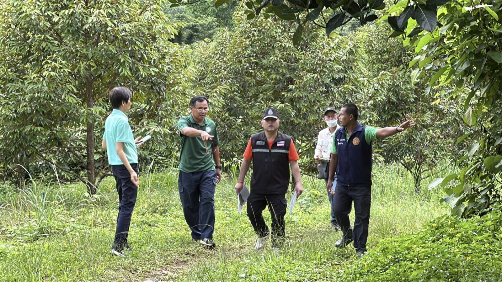 จากการลงพื้นที่ตรวจสอบ พบว่าแปลงหนึ่งเป็นของ อดีตผู้ใหญ่บ้าน มีการปลูกทุเรียนอายุ 4 ปี และใช้น้ำประปาหมู่บ้านดูแลสวน ส่วนอีกแปลงขนาด 8 ไร่ อยู่ในพื้นที่ของ สำนักสงฆ์ที่ยังไม่ได้รับการขึ้นทะเบียน ปลูกทุเรียนอายุราว 10 ปี