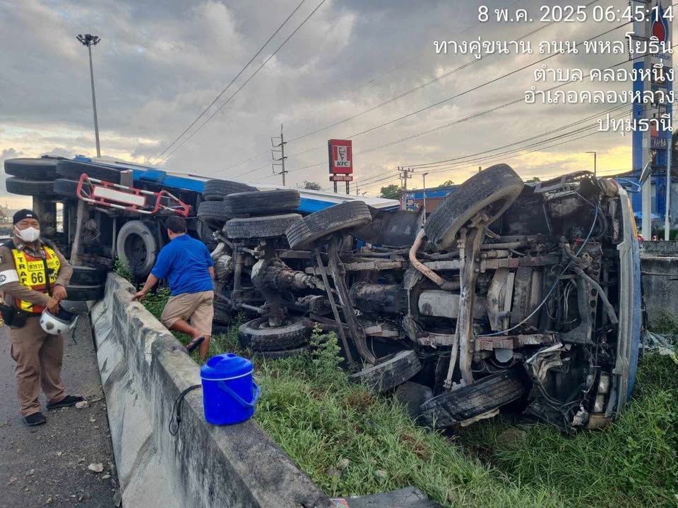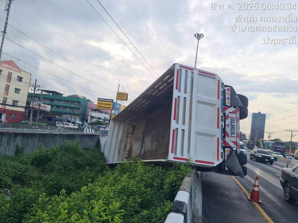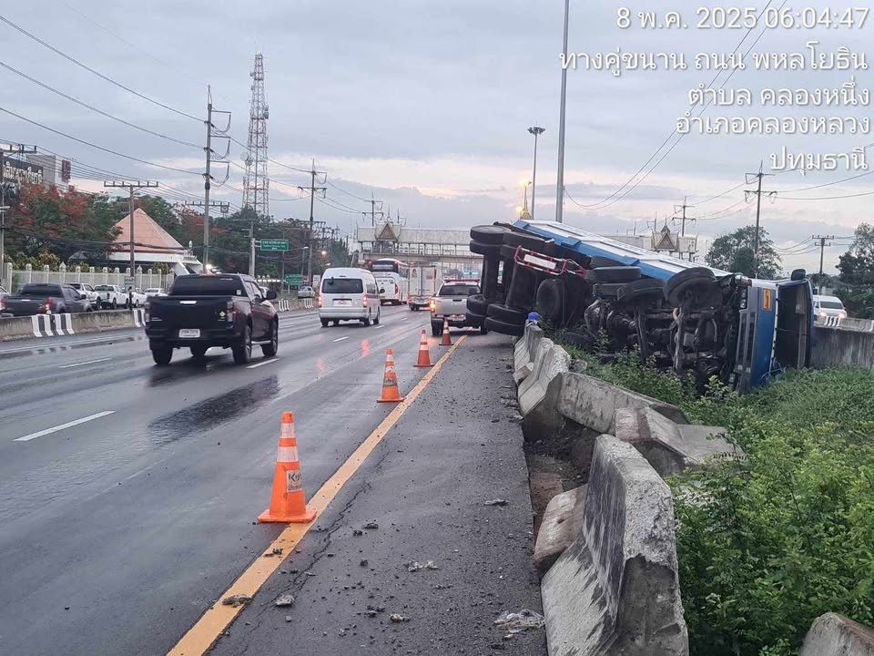 09.50 น. จนท.ดำเนินการเคลื่อนย้ายรถบรรทุกที่ตกร่องกลางถนนพหลโยธิน ขาออก ช่องทางหลัก หน้าโรงพยาบาลธรรมศาสตร์ รังสิต พ้นกีดขวาง เปิดการจราจรปกติ รถติดสะสมท้ายแถวหน้า บขส.รังสิต , ถนนคลองหลวง ขาเข้า ท้ายแถวสะสมแยกคลองห้า และถนนเชียงราก ขาเข้า ท้ายแถวสะสมสนามกีฬามหาวิทยาลัยธรรมศาสตร์