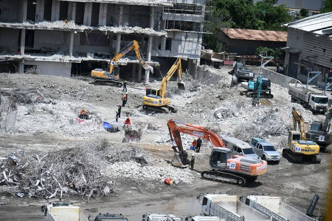 ทั้งนี้ หน่วยงานเอกชนบางจุดที่กำลังเก็บอุปกรณ์กลับ จากบริเวณพื้นที่ตึกถล่ม ทางการไฟฟ้าได้เข้าอำนวยความสะดวกในการขนย้ายเพื่อความปลอดภัยเรื่องไฟฟ้ารั่ว ส่วนจำนวนการขนย้ายซากปูนโดยรถบรรทุกจากเมื่อวานถึงวันนี้ ขนย้ายแล้ว 129 เที่ยว และงานซ่อมแซมเครื่องจักรต่างๆ ยังคงมีการดำเนินการอย่างต่อเนื่อง เพื่อให้ภารกิจไม่สะดุด