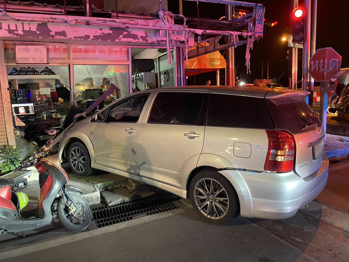 ที่เกิดเหตุ พบรถอเนกประสงค์ โตโยต้า สีเทา ป้ายทะเบียน กทม. ลักษณะชนกับรถกระบะ โตโยต้า สีดำ ป้ายทะเบียน กทม. พบว่ามีผู้บาดเจ็บ 2 รายเป็นชาย, หญิง อาสาสมัครช่วยเหลือและนำส่ง รพ.บางปะกอก 8