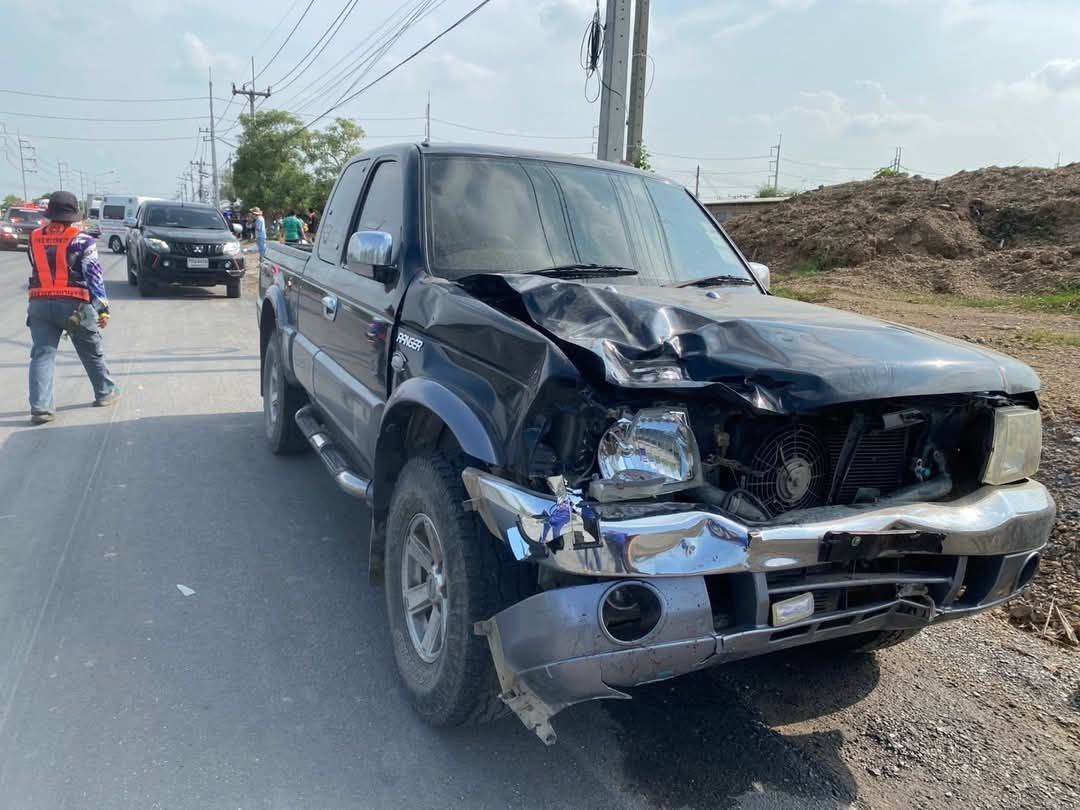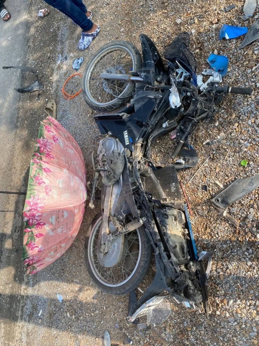 รถกระบะชนกับรถจักรยานยนต์ มีผู้เสียชีวิต 2 รายเป็นหญิงชาวเมียนมา จ.กาญจนบุรี