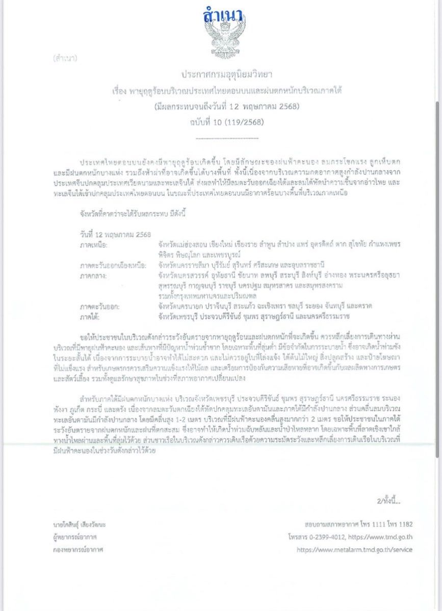 วันนี้ (12 พ.ค.68 ) นายวราวุธ แสงทอง นักวิชาการป่าไม้ชำนาญการ รักษาการหัวหน้าอุทยานแห่งชาติหมู่เกาะสิมิลัน เปิดเผยว่า ด้วยกรมอุตุนิยมวิทยา ได้ออกประกาศ เรื่อง พายุฤดูร้อนบริเวณประเทศไทยตอนบนและฝนตกหนักบริเวณภาคใต้ อุทยานแห่งชาติหมู่เกาะสิมิลัน พิจารณาแล้ว เพื่อความปลอดภัยในชีวิตและทรัพย์สินของนักท่องเที่ยว จึงขอประกาศปิดการท่องเที่ยวอุทยานแห่งชาติหมู่เกาะสิมิลัน กิจกรรมท่องเที่ยวประเภทไป - กลับ เป็นการชั่วคราว