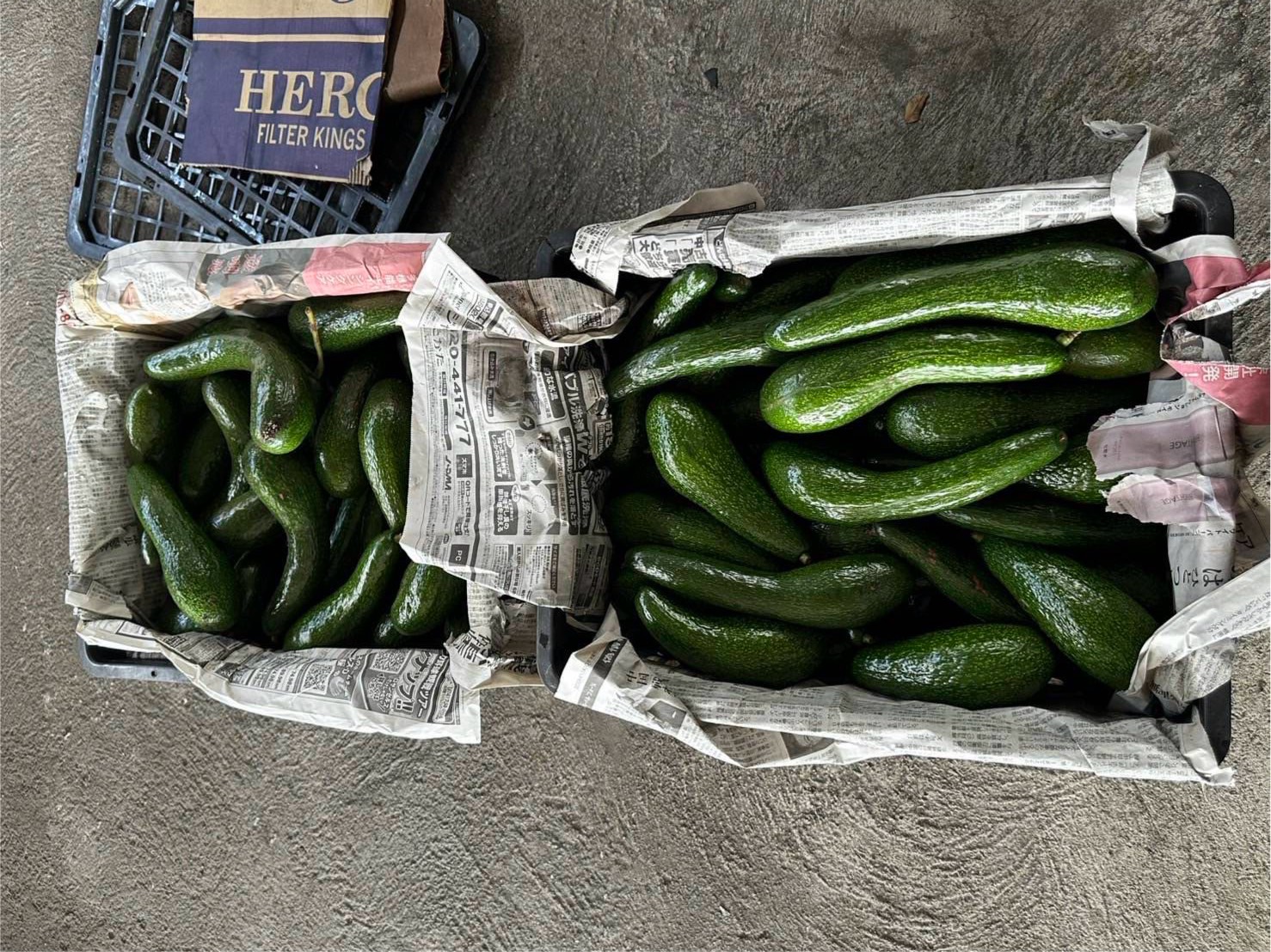 จากการเข้าตรวจสอบภายในพบผลไม้สดประเภทอะโวคาโดบรรจุในตะกร้าพลาสติก