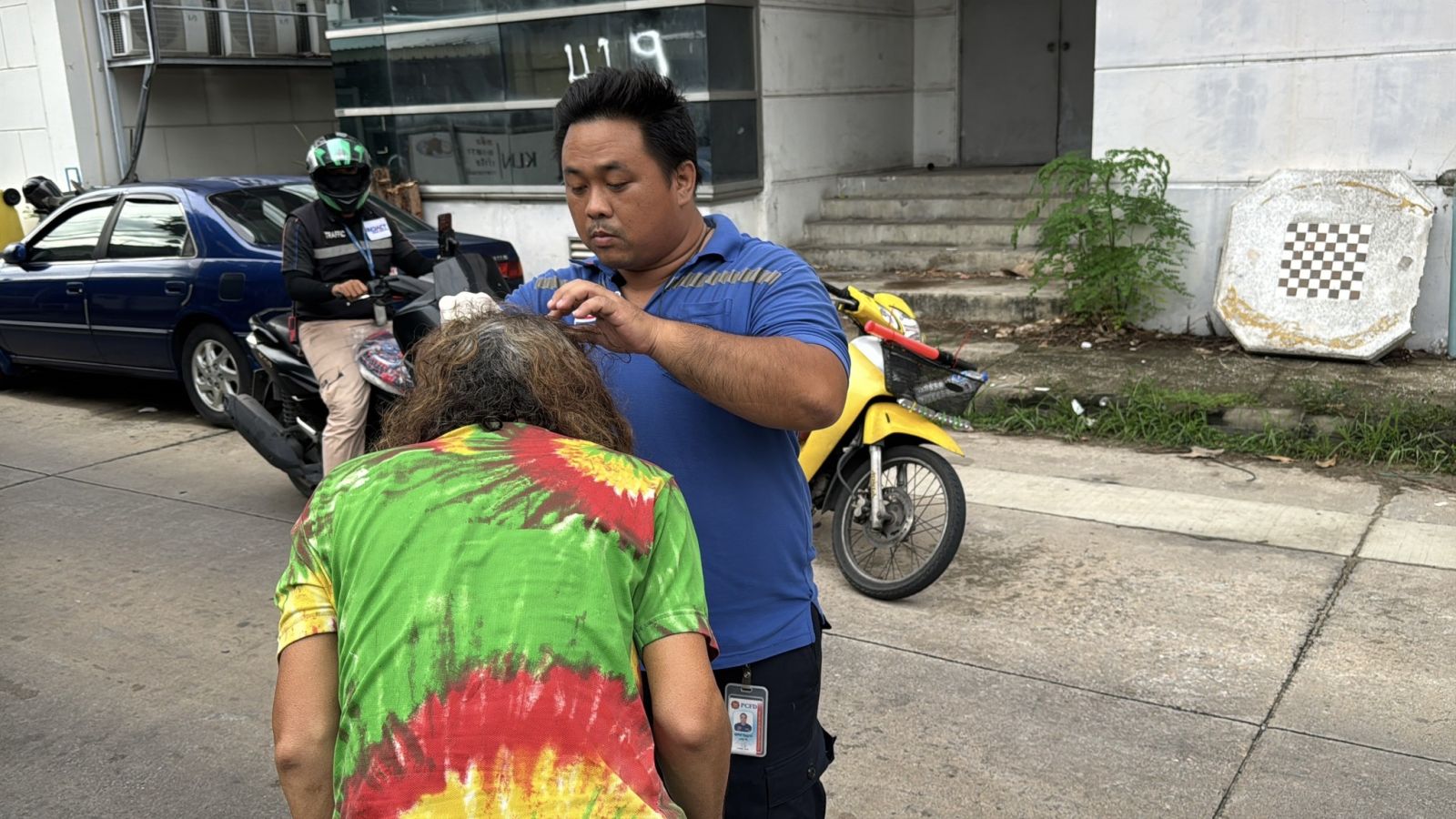 นางออ (สงวนนามสกุล) อายุ 65 ปี พลเมืองดีที่โทรแจ้งกู้ภัย กล่าวว่า บ้านตนอยู่ห่างจากจุดเกิดเหตประมาณ 500 เมตร ตนจึงเดินมาที่ร้านค้าห่างจากที่พบคนถูกผึ้งต่อยประมาณ 50 เมตร ระหว่างนั้นมองไปเห็นมุ้งอยู่ริมทางเท้าและมีผู้ชายนั่งอยู่ในมุ้ง ภายนอกมุ้งพบผึ้งจำนวนมากรุมตอมอยู่ จึงถามที่ร้านค้าว่าเห็นคนถูกผึ้งรุมไหม ทางร้านแจ้งว่าเห็นตั้งแต่บ่ายแล้วผึ้งมาตอมเป็นฝูงเลย แต่มีผู้ชาย 2 คนมาช่วยก็ถูกผึ้งต่อย ที่ร้านกลัวจะถูกต่อยเลยไม่ได้ช่วย ตนจึงถามว่าแล้วไม่มีใครแจ้งกู้ภัยช่วยเขา ตนเห็นเขาถูกผึ้งต่อยเยอะมากจึงโทรแจ้งไปที่ศูนย์กู้ภัย จากนั้นกู้ภัยก็มาช่วยเหลือเขา