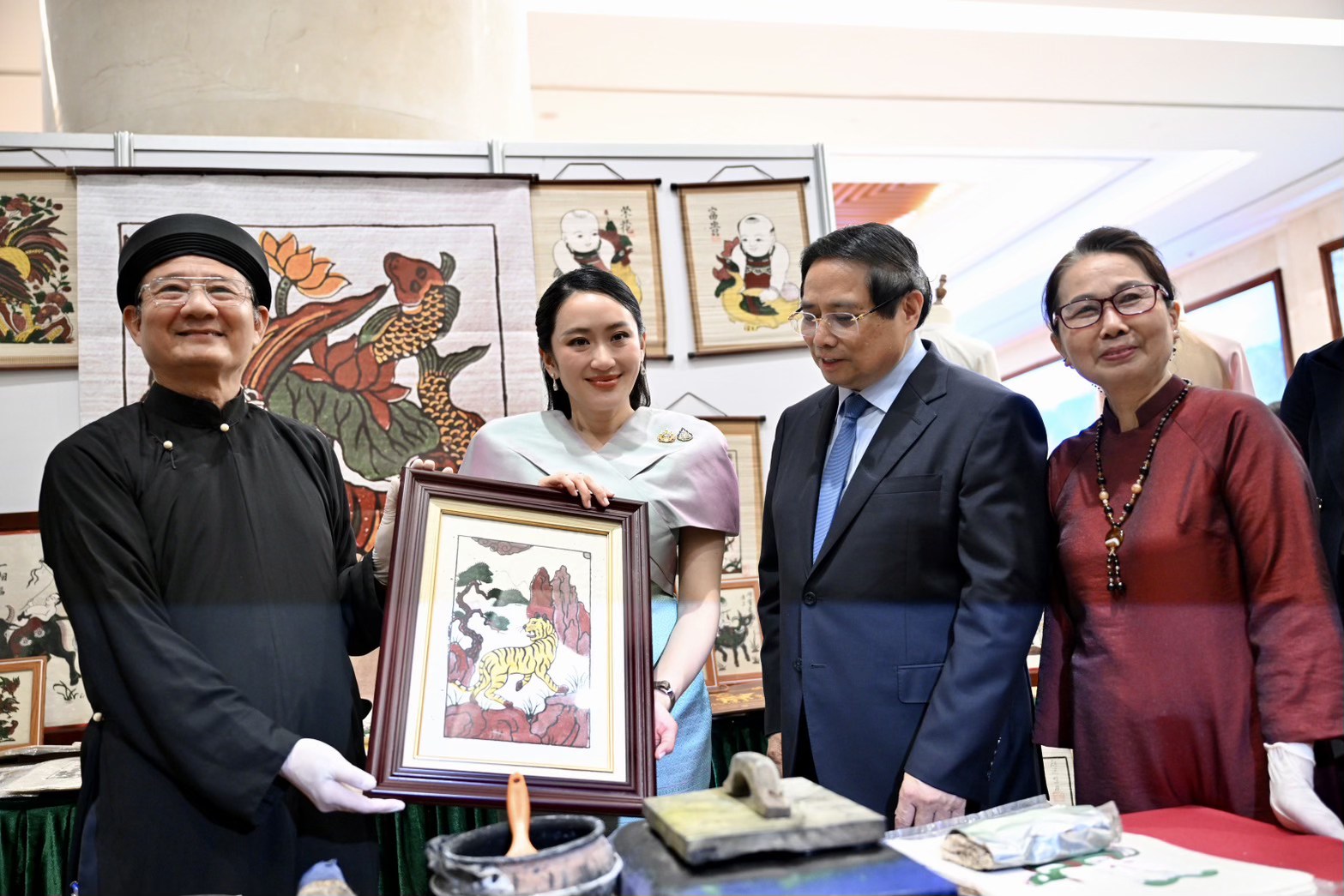 ทั้งนี้ ก่อนเริ่มงานเลี้ยง นายกรัฐมนตรีเวียดนามได้นำนายกรัฐมนตรีเยี่ยมชมนิทรรศการหัตถกรรมท้องถิ่นของเวียดนาม รวมถึงของที่ระลึกจากทั้งสองฝ่ายซึ่งจัดแสดงบริเวณทางเข้างาน