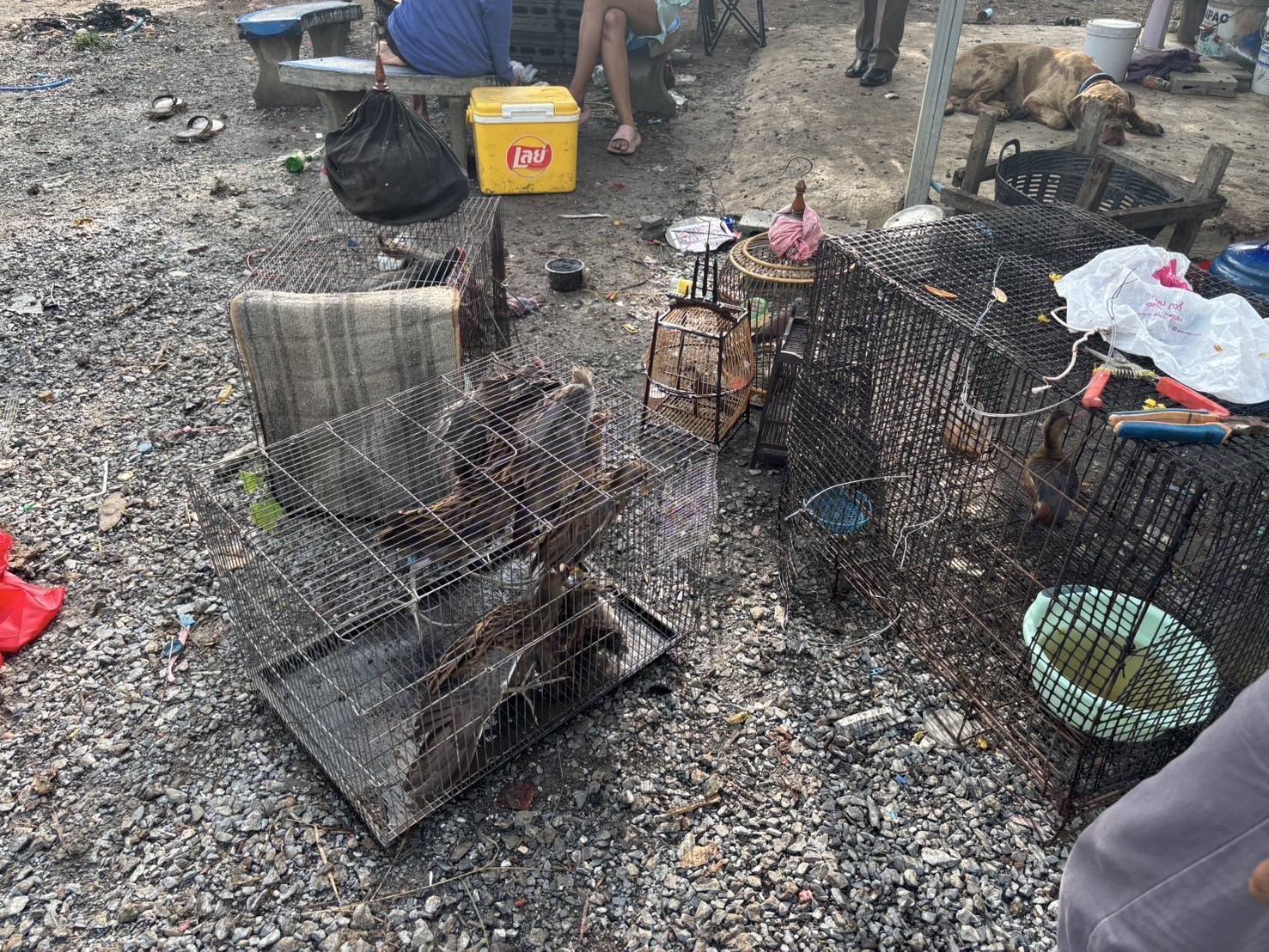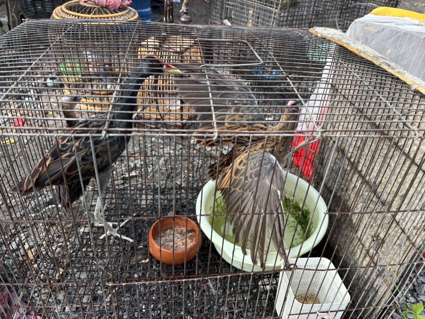 7. กรงขังนกทําจากเส้นลวดเหล็ก จํานวน 3 กรง