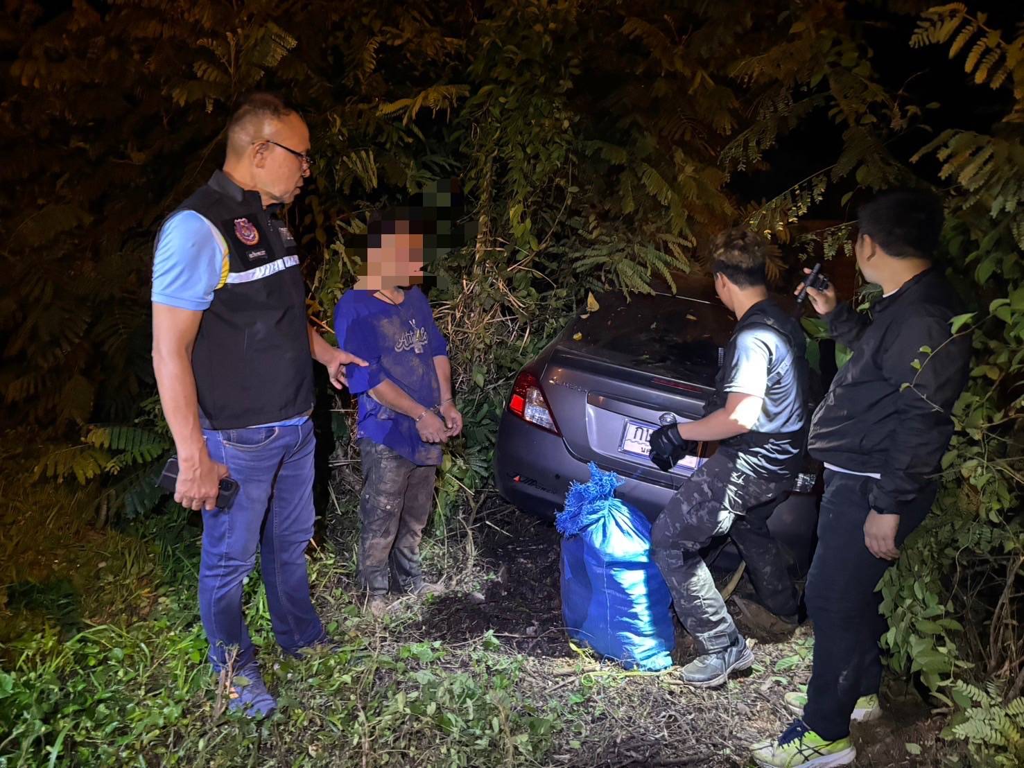 กระทั่งเมื่อเวลา 21.30 น เจ้าหน้าที่พบเห็นรถยนต์เก๋ง ทะเบียน จ.นครสวรรค์ ขับลงมายังใต้สะพานตรงจุดกลับรถแล้วรีบลงมายก กระสอบขึ้นรถ ก่อนรีบขับหนีออกไป เจ้าหน้าที่จึงไล่ติดตามรถยนต์เก๋งคันดังกล่าว กระทั่งสามารถจับกุม ได้พร้อมของกลาง กระสอบบรรจุยาเสพติด จำนวน 1 ใบ บริเวณริมถนน 212 บริเวณหลัก กม.ที่ 245 - 246 บ.พะทาย ม.3 ต.พะทาย อ.ท่าอุเทน จ.นครพนม เจ้าหน้าที่จึงนำผู้ต้องหาพร้อมของกลาง ทั้งหมดมาที่ ร้อย ตชด.237 เพื่อตรวจนับและ ดำเนินการตามกฎหมายต่อไป