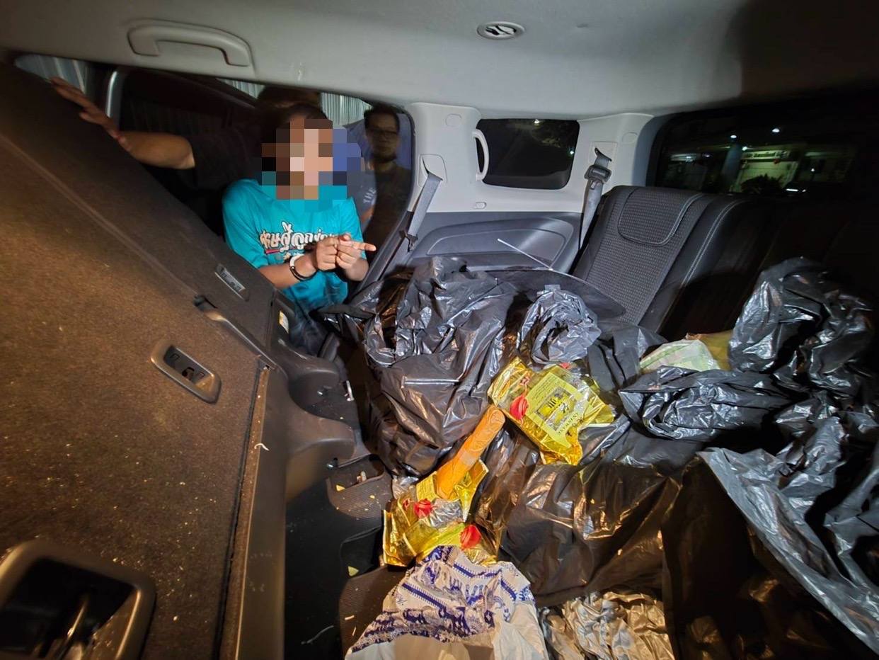 ต่อมาเจ้าหน้าที่ตำรวจฝ่ายสืบสวน สน.มักกะสัน ได้เดินทางไปตรวจสอบตามที่สายลับแจ้งไว้ พบรถยนต์คันดังกล่าวซึ่งมีหมายเลขทะเบียนตรงตามที่สายลับแจ้งไว้ จอดอยู่ที่จอดรถในซอยเพชรบุรี ซอย 35 และพบผู้ต้องหาอยู่บริเวณรถ เจ้าหน้าที่ฝ่ายสืบสวนจึงได้แสดงตัวขอทำการตรวจค้น พบของกลางยาบ้ายาไอซ์ โดยใส่ไว้ในถุงดำ ได้วางไว้บนเบาะรถยนต์คันดังกล่าว