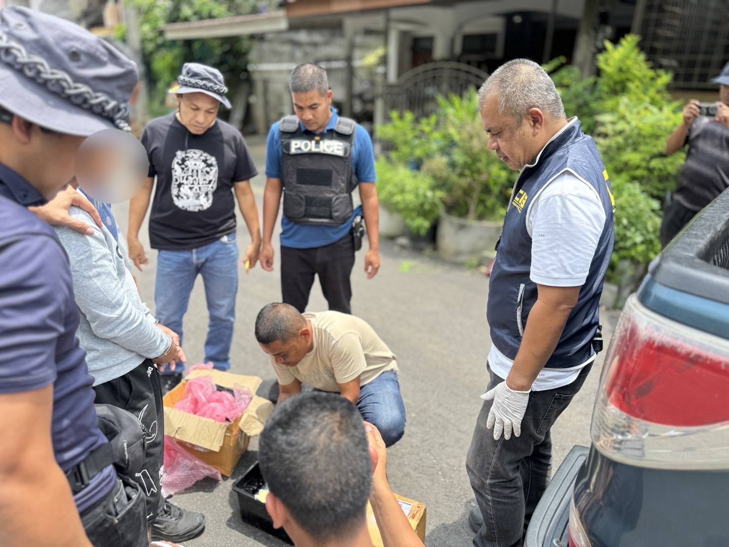 สืบเนื่องจากตำรวจกองปราบปราม ได้ทำการสืบสวน ทราบว่าจะมีการนัดส่งมอบยาบ้า กันที่บริเวณ ถนนสายราษฎร์อุทิศ 4 จ.ตรัง จึงได้วางแผนเข้าทำการจับกุมวางกำลังเฝ้าซุ่มสังเกตุการณฺ์ พบนายรอขับขี่รถกระบะบรรทุก มาจอดหน้ารถกระบะส่งสินค้าและเปิดประตูรถแล้วเดินลงมาที่รถกระบะส่งสินค้าดังกล่าว แล้วเดินไปรับกล่องพัสดุ ลักษณะเป็นกล่องกระดาษลังสีน้ำตาล จำนวน 2 ลัง แล้วเดินกลับมาที่รถกระบะของตน