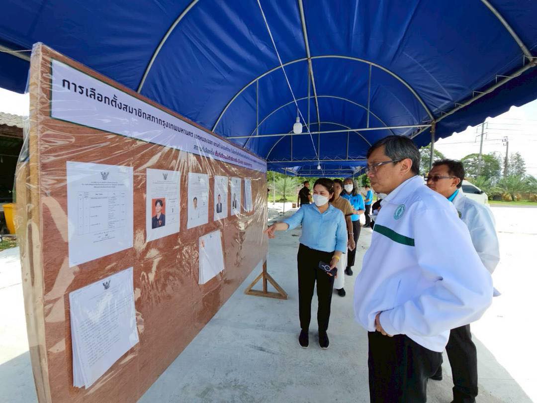 (16 พ.ค. 68) นายสุนทร สุนทรชาติ รองปลัดกรุงเทพมหานคร ลงพื้นที่ตรวจความพร้อมเตรียมการเลือกตั้งสมาชิกสภากรุงเทพมหานคร เขตหนองจอก แทนตำแหน่งที่ว่าง ที่จะมีขึ้นในวันอาทิตย์ที่ 18 พฤษภาคม 2568 เวลา 08.00 – 17.00 น. โดยตรวจหน่วยเลือกตั้งในพื้นที่แขวงหนองจอก ได้แก่ หน่วยที่ 4 – 5 ณ เต็นท์บริเวณมัสยิดอิรอฮีม (บึงเตย) ถนนประชาสำราญ และหน่วยเลือกตั้งในพื้นที่แขวงกระทุ่มราย ได้แก่ หน่วยที่ 31 – 32 ณ เต็นท์บริเวณตลาดอยู่ดีมีสุข ถนนอยู่วิทยา และหน่วยที่ 33 – 41 ณ เต็นท์บริเวณตลาดนัดหมู่บ้านอมรทรัพย์ ซอยอยู่วิทยา 18 โดย นางสาวยุวนุช นงพรมมา ผู้อำนวยการเขตหนองจอก และผู้เกี่ยวข้อง ร่วมลงพื้นที่