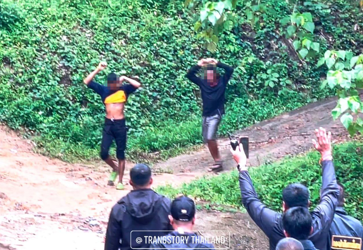 เมื่อเวลา 17.00 น. วันนี้ 16 พฤษภาคม 2568 พ.ต.อ.รัฐกร ภักดีวานิช ผกก. สส.ภ.จว.ตรัง ตำรวจชุดสืบสวนตำรวจภูธรภาค 9 และชุดสืบสวนตำรวจภูธรจังหวัดตรัง เดินทางขึ้นไปบนภูเขาในพื้นที่บ้านเขาหลัก ต.น้ำผุด อ.เมือง จ.ตรัง หลังสืบสวนพบว่า นายแจ็ค (นามสมมุตติ) และ นายเถือก (นามสมมุตติ) 2 ใน 4 ผู้ต้องหา คดีฆ่าเผานั่งยางโกเชษฐ์ พร้อมลูกน้องอีก 2 คน ซึ่งเป็นคนดูแลสวนปาล์มน้ำมันในพื้นที่หมู่ที่ 1 ตำบลกะลาเส อำเภอสิเกา จังหวัดตรัง เมื่อวันที่ 10 พฤษภาคม และเป็นผู้ต้องหาตามหมายจับศาลจังหวัดตรัง ข้อหาร่วมกันฆ่าผู้อื่นโดยไตร่ตรองไว้ก่อน , ร่วมกันซ่อนเร้น ทำลายศพ , ร่วมกันปล้นทรัพย์โดยมีอาวุธ ,ร่วมกันมีอาวุธปืนไว้ในครอบครอง ,ร่วมกันพกพาอาวุธปืน , ยิงปืนโดยไม่มีเหตุอันสมควร