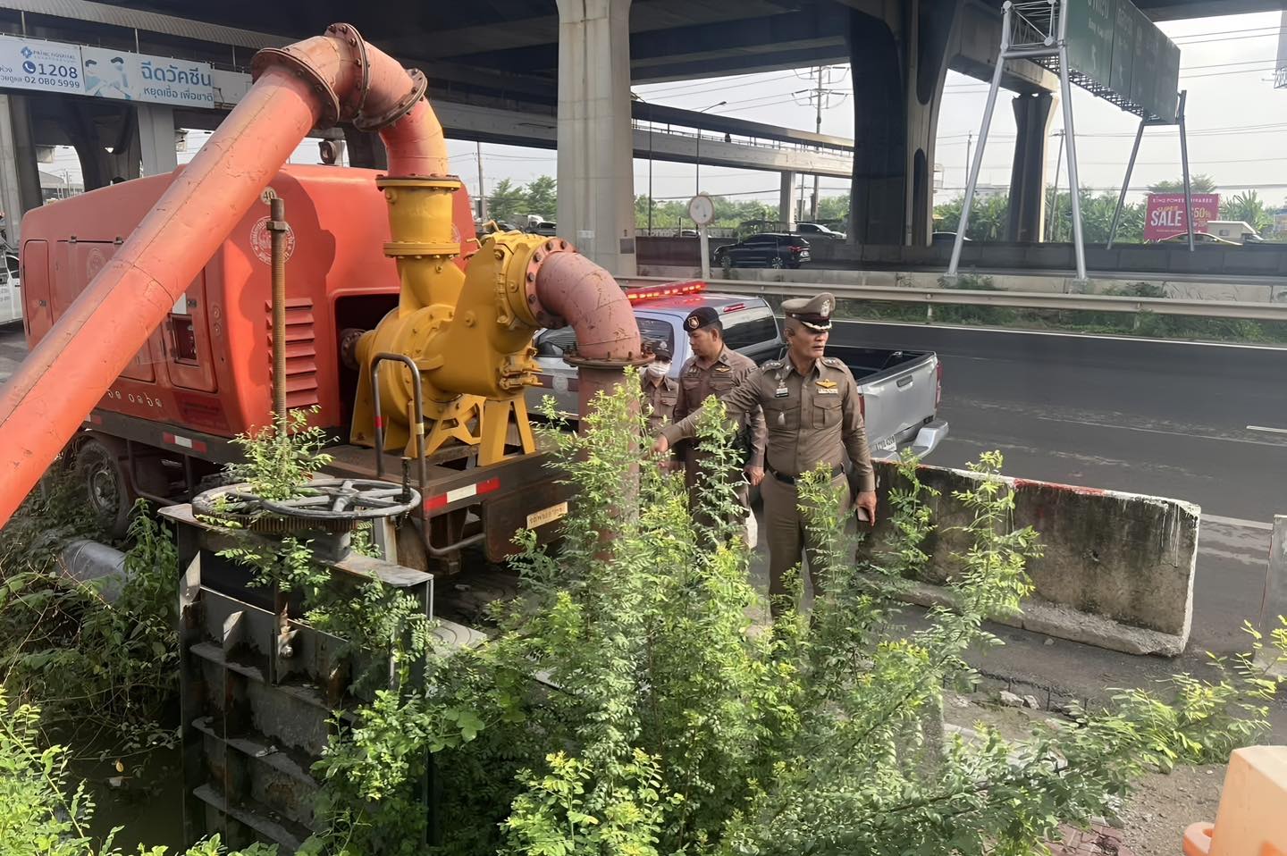 พ.ต.อ.ประภาส มั่งคั่ง รองผู้บังคับการตำรวจภูธรจังหวัดสมุทรปราการ พร้อมด้วย พ.ต.อ.อดิเรก ทองแกมแก้ว ผู้กำกับการสถานีตำรวจภูธรบางแก้ว และเจ้าหน้าที่ตำรวจในพื้นที่ ได้ลงพื้นที่ตรวจสอบระบบระบายน้ำ เครื่องสูบน้ำ และแหล่งน้ำธรรมชาติที่เป็นจุดสำคัญในการระบายน้ำ
