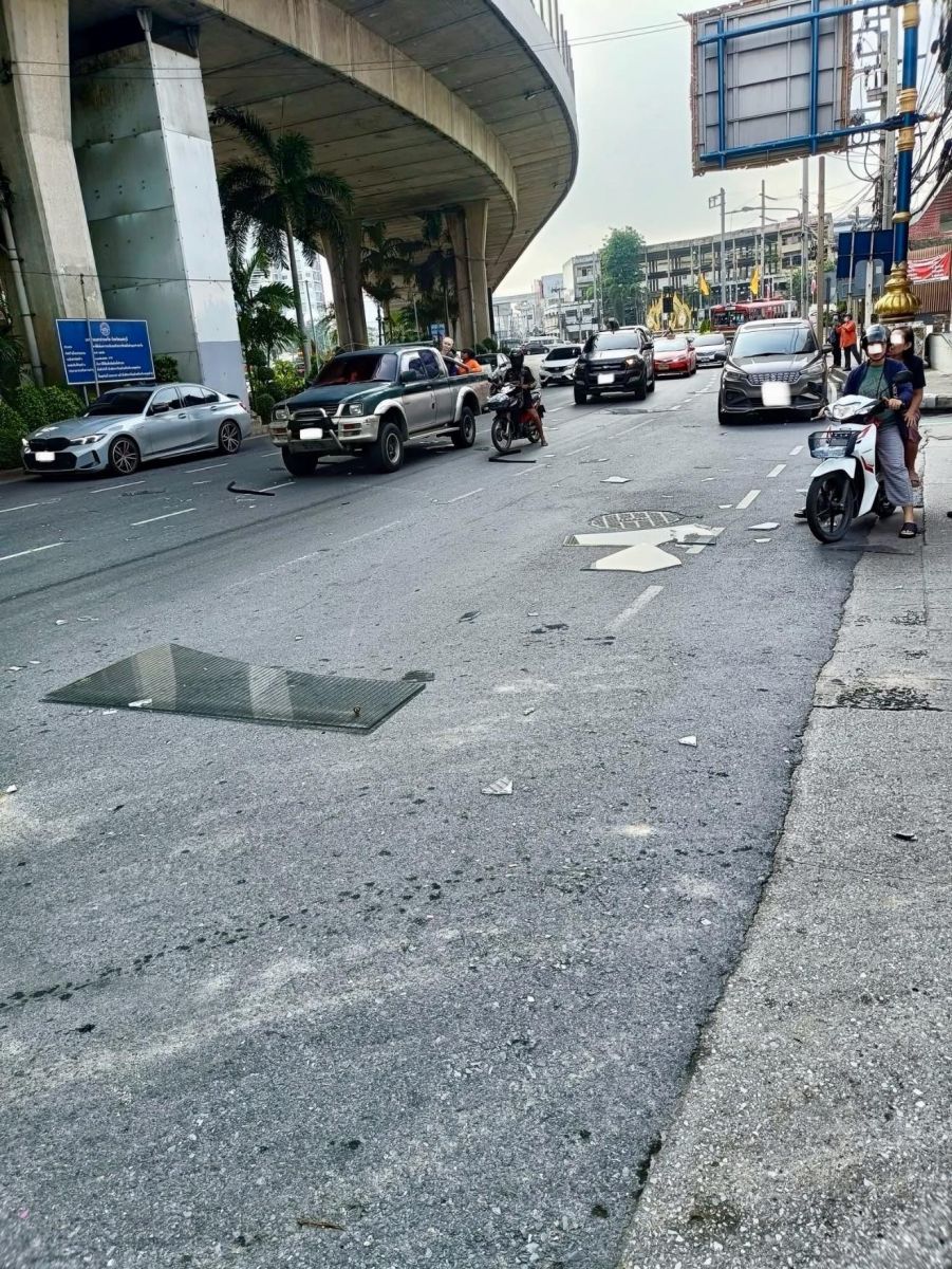 กรณีแผ่นราวกั้นบนสะพานพระราม 4 ตกลงมาแตกบนถนนด้านล่าง ขณะประชาชนสัญจร โชคดีไม่โดนใคร เนื่องจากอุบัติเหตุรถบรรทุกชนแผ่นราวกั้นโค้งสะพานพระราม 4 ปากเกร็ด ฝั่งขาออก จ.นนทบุรี เมื่อช่วง 8 โมงเช้าวันนี้ 17 พฤษภาคม 2568