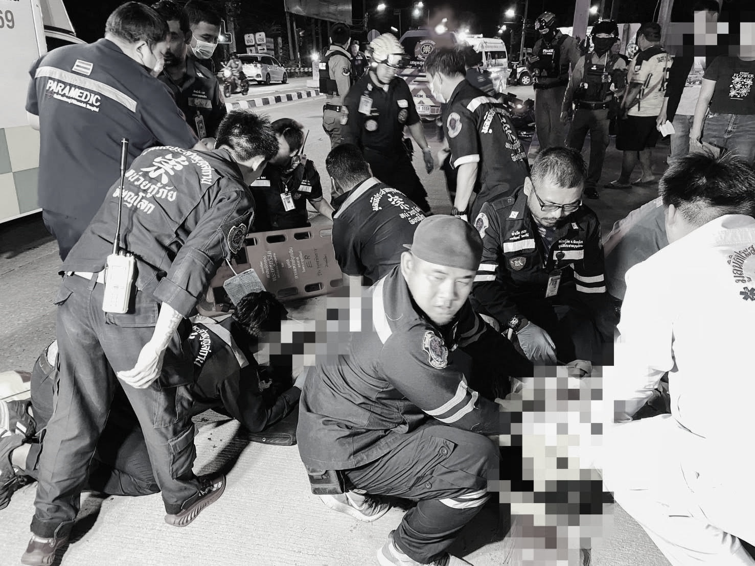 ที่เกิดเหตุ พบรถจักรยานยนต์ ฮอนด้า CBR สีน้ำตาล ป้ายทะเบียนตราโล่ ล้มคว่ำได้รับความเสียหาย ใกล้กันพบร่างของเจ้าหน้าที่ตำรวจ 2 นายได้รับบาดเจ็บสาหัส ทราบชื่อต่อมา ส.ต.ท.ฐิติกร ผบ.หมู่(ป) สภ.เมืองพิษณุโลก เป็นผู้ขับขี่ และ ส.ต.ท.อภิเดช ผบ.หมู่ (ป) เป็นผู้ซ้อนท้าย มีอาการสาหัสและหมดสติ โดยทั้ง 2 นายมีบาดแผลแตกบริเวณศีรษะ บาดแผลถลอกตามลำตัว เจ้าหน้าที่เร่ง CPR เพื่อช่วยชีวิตทั้ง 2 นาย พร้อมนำตัวส่งโรงพยาบาลพุทธชินราช ล่าสุดมีรายงานว่า ส.ต.ท.อภิเดช เสียชีวิตในเวลาต่อมา